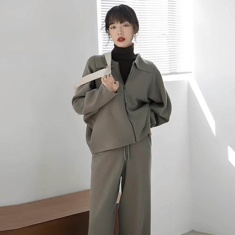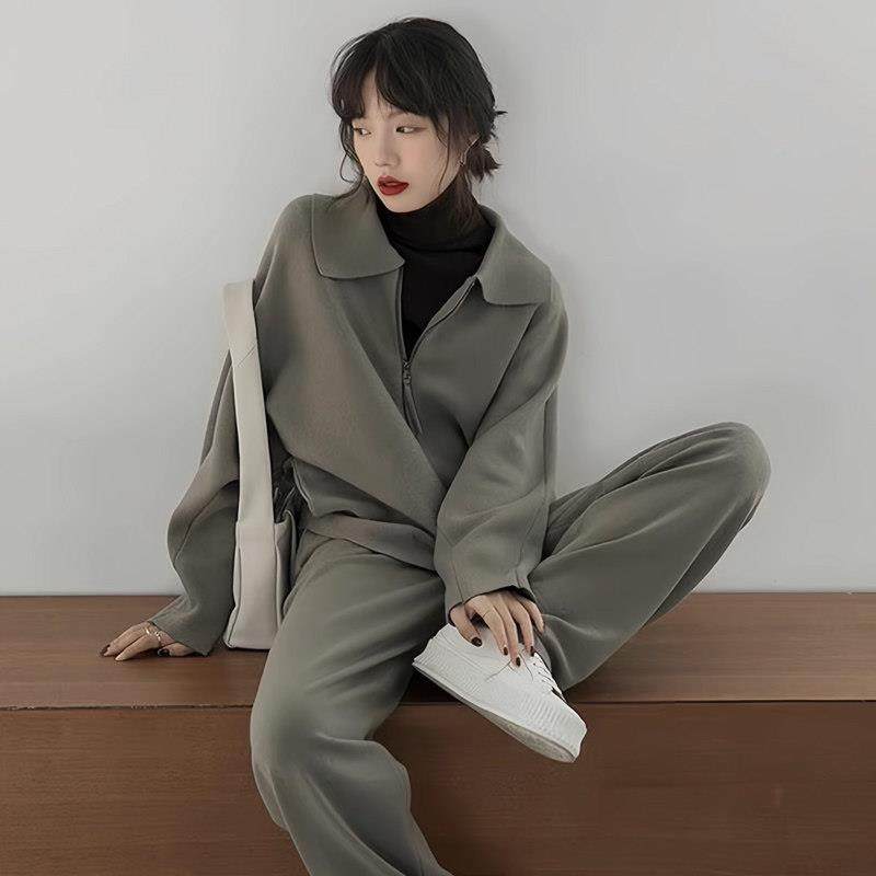 春季休闲运动套装女春秋季时尚港风开衫复古显瘦洋气卫衣跑0119ud