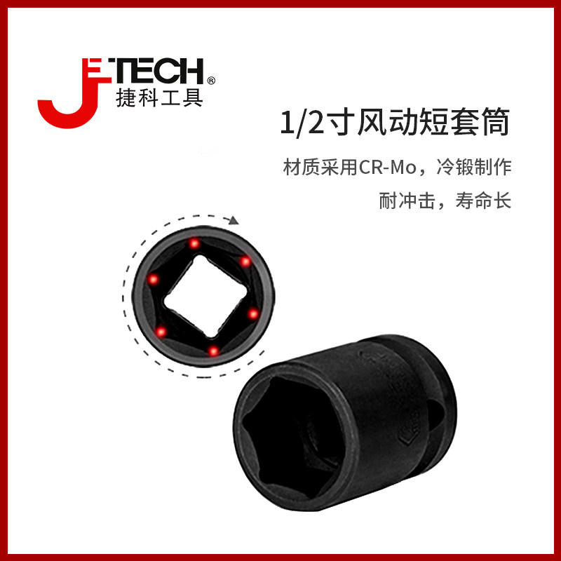 jetech捷科工具1/2寸风动短套筒重型小风炮套筒加厚24气动电扳头