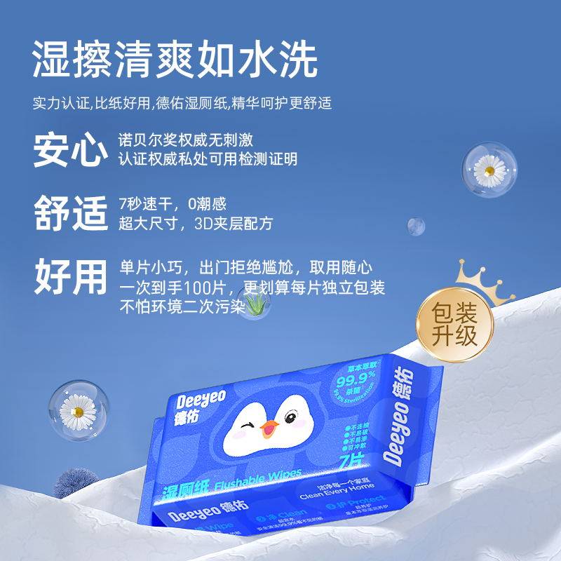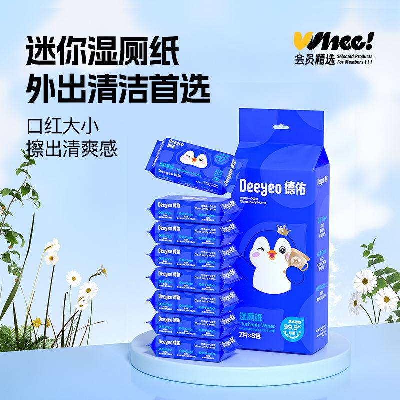 会员精选德佑植萃精华mini手帕湿巾7片*8包*1提&德佑mini湿厕纸