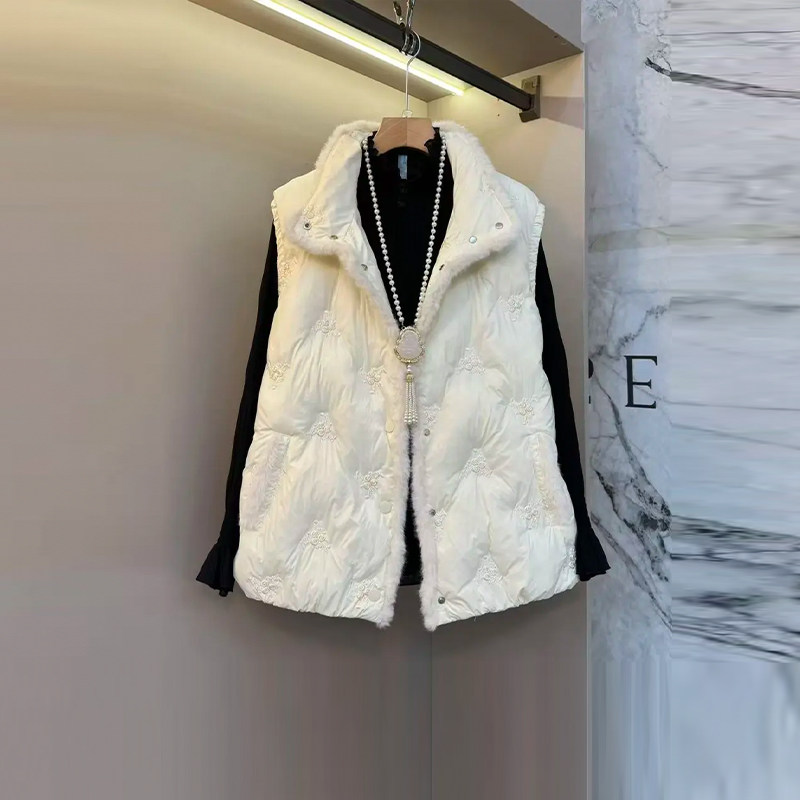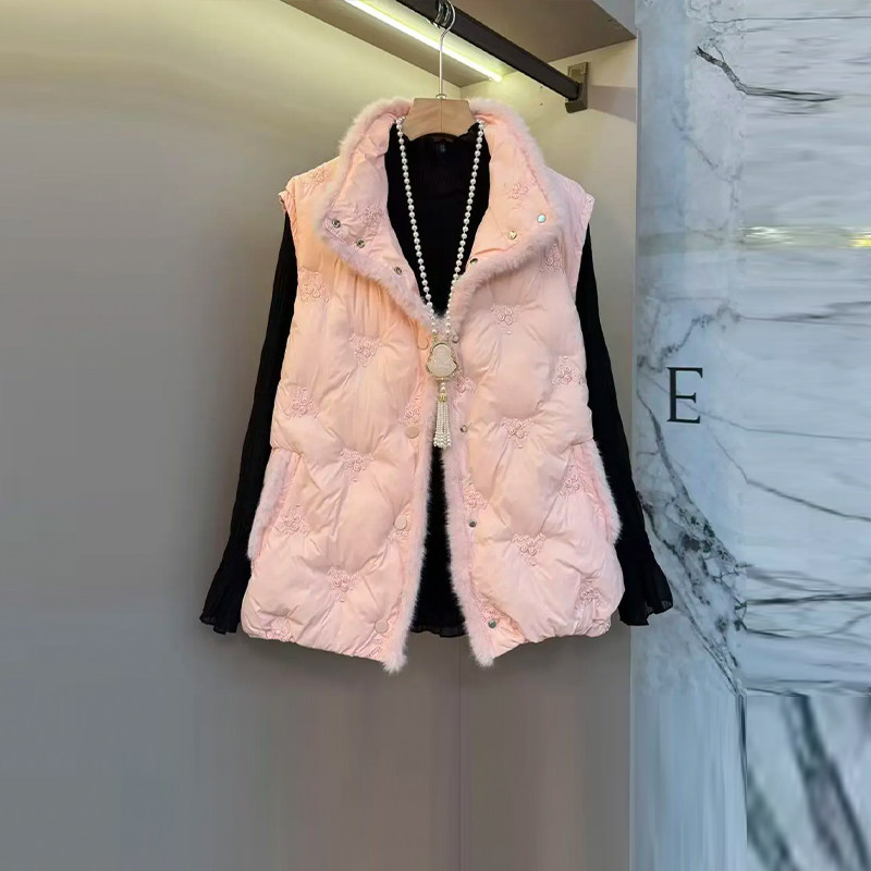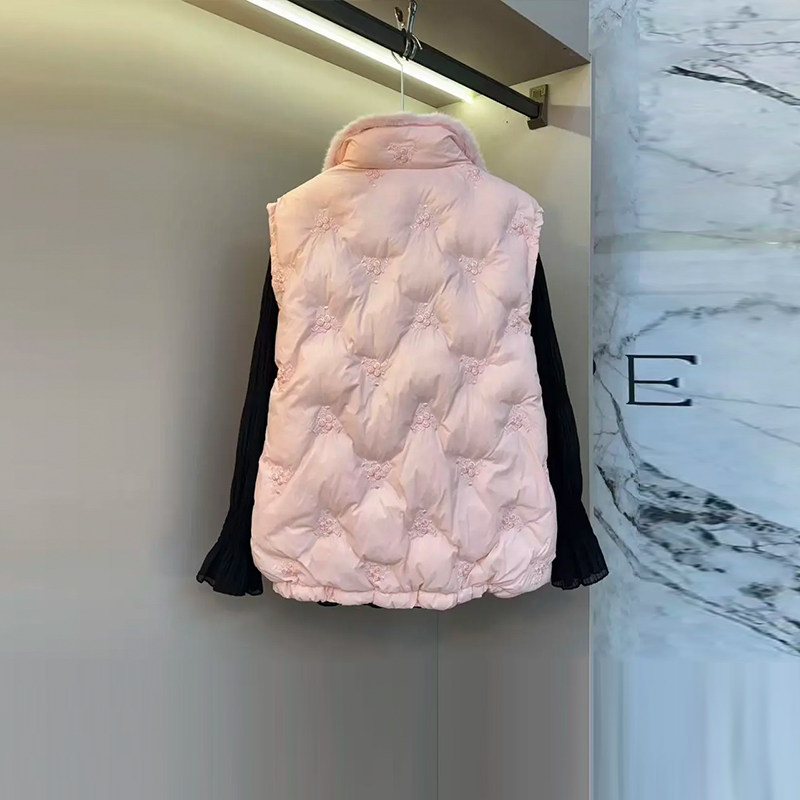 大码女装立领毛边棉服马甲
