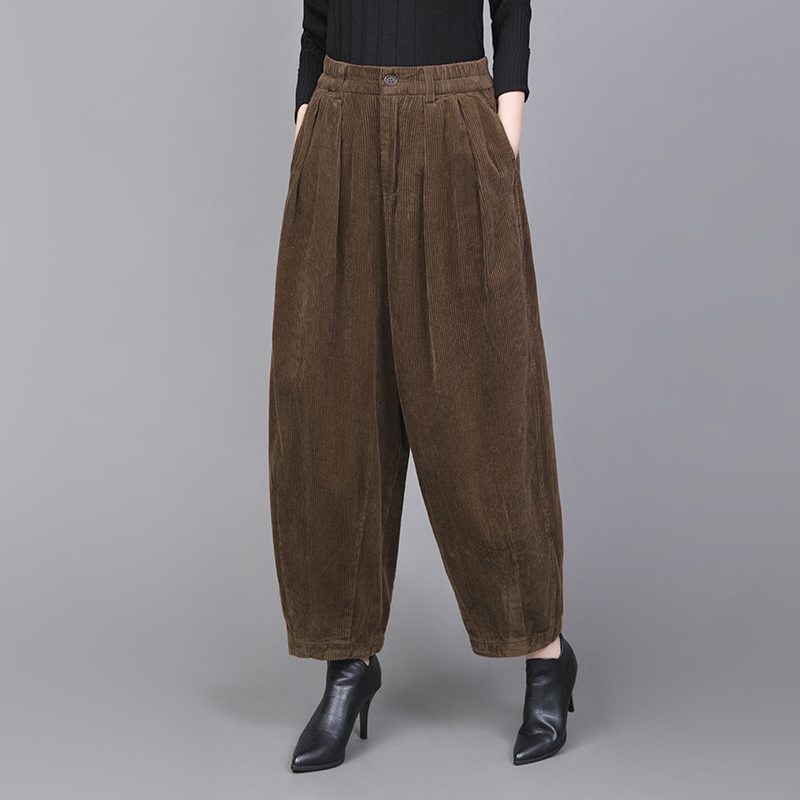 垂感显瘦灯芯绒哈伦裤女2024新款纯棉松紧高腰宽松休闲阔腿裤