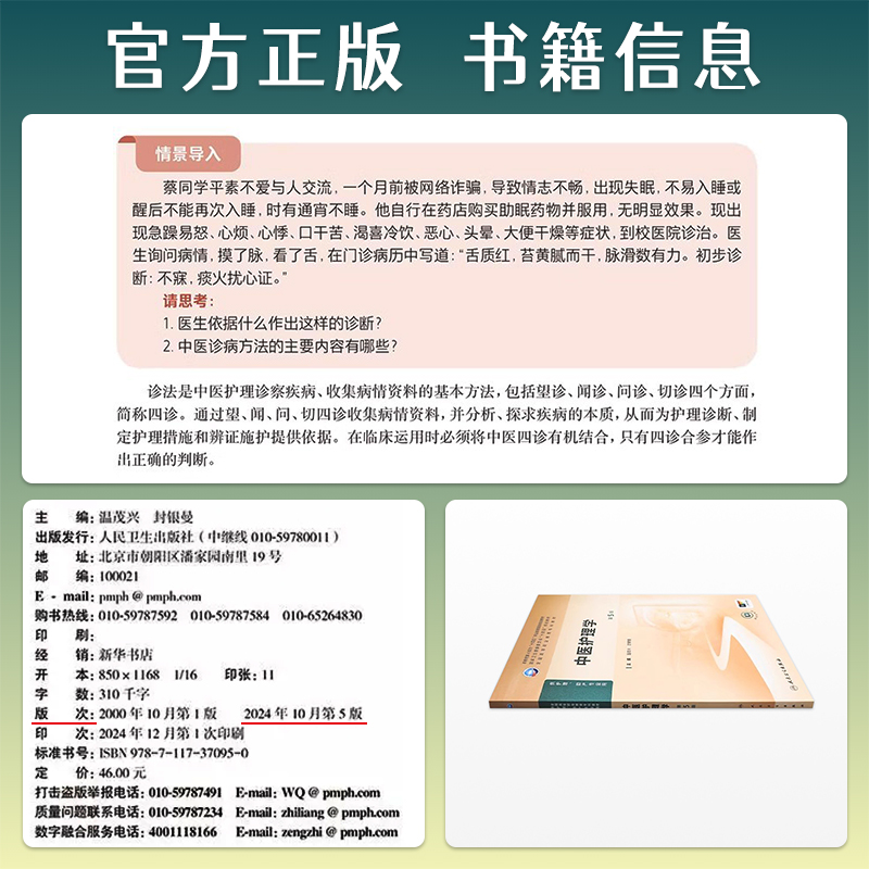中医护理学第5版第五版温茂兴封银曼人卫新版高职高专护理助产学专业十四五规划教材配增值3年制护理学专业大学教材人民卫生出版社