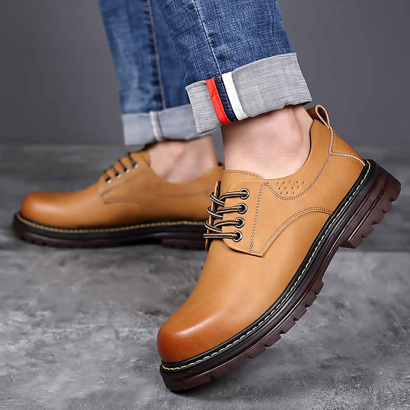 牛筋底真皮透气大头皮鞋男士耐磨防水休闲鞋工装鞋低帮百搭马丁靴