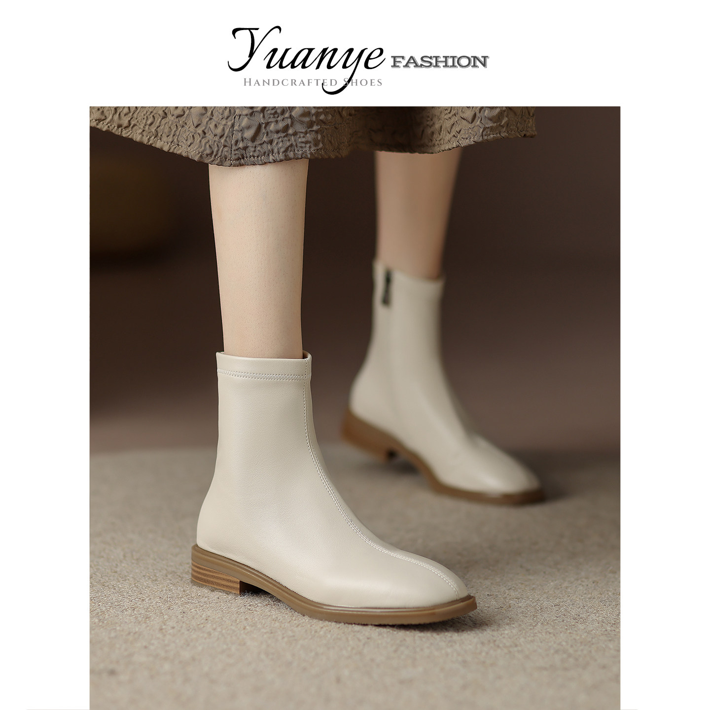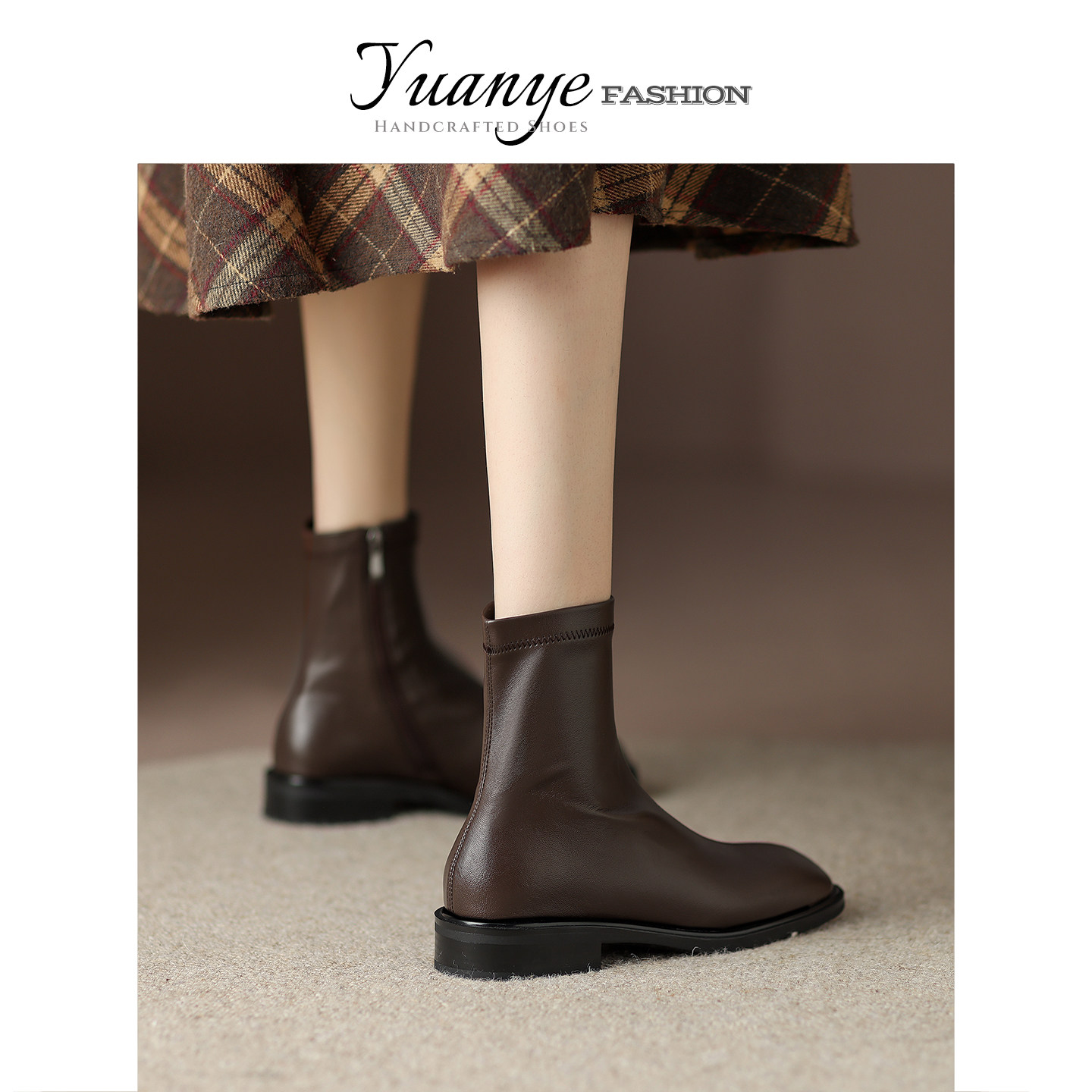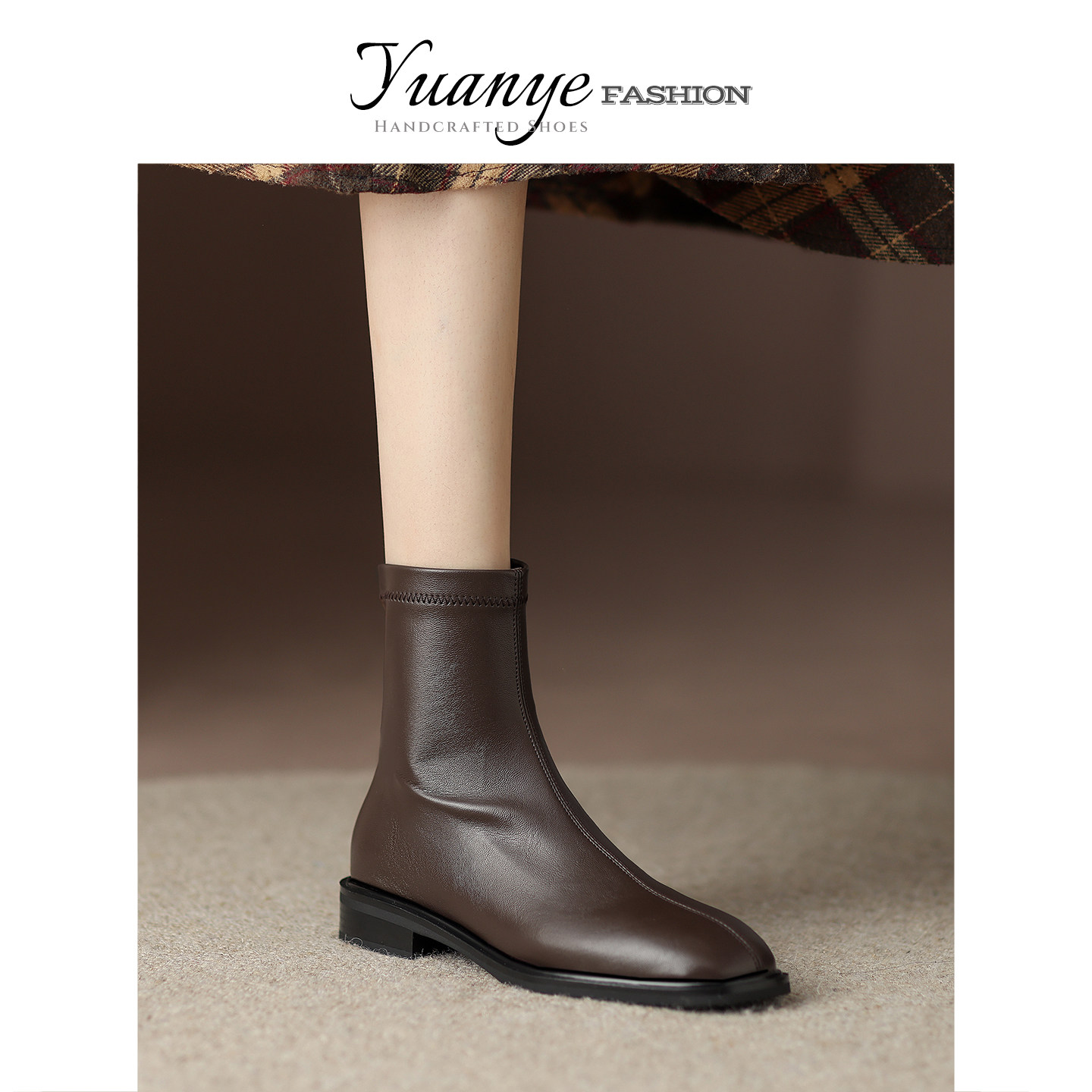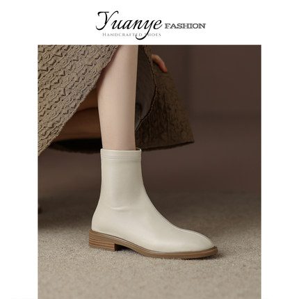 原野方头平底弹力瘦瘦靴加绒英伦百搭马丁靴子冬季单靴女新款短靴