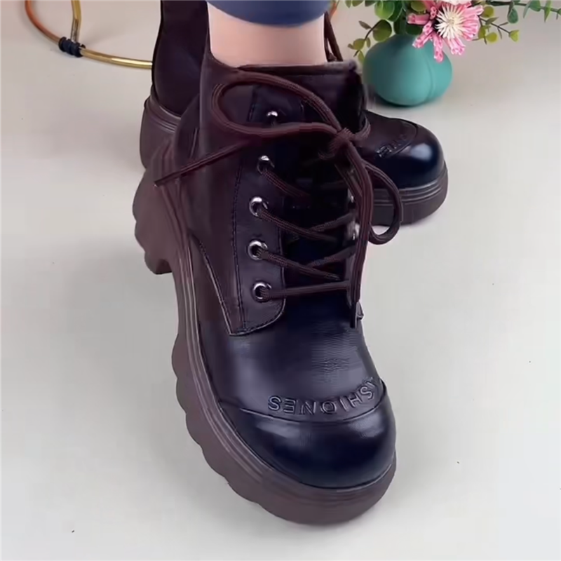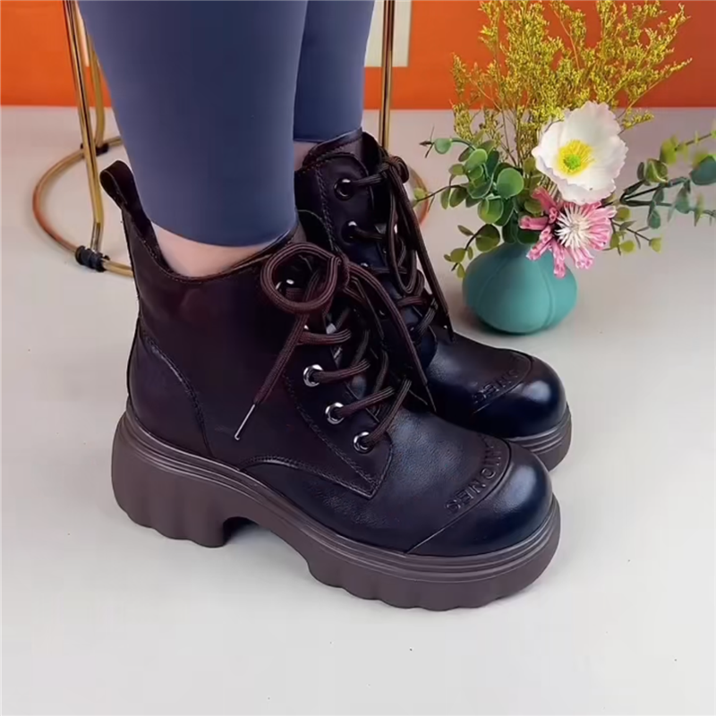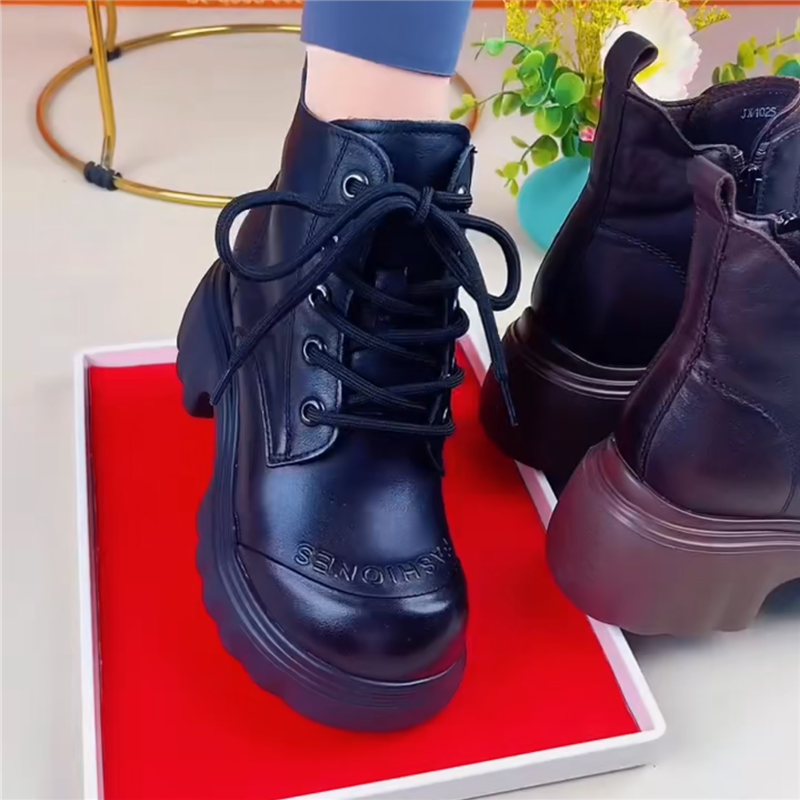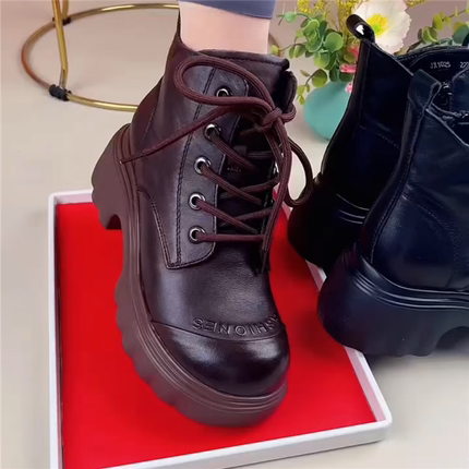 粗跟马丁靴女真皮短靴女