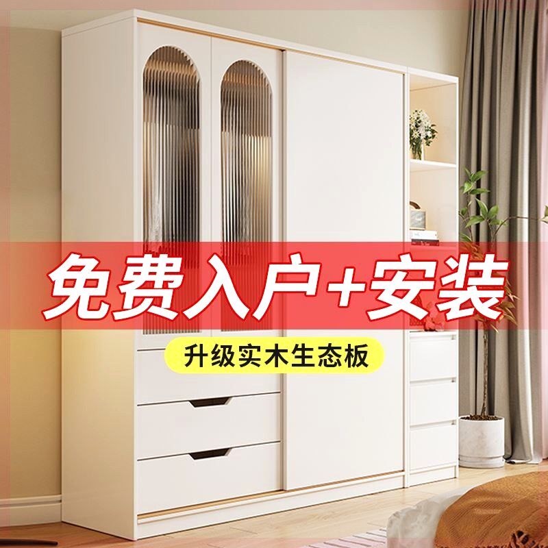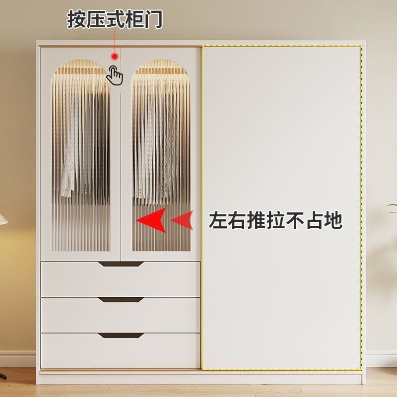 衣柜奶油风拉f门衣橱现代简约出租房一体加固收纳柜免安装衣整体