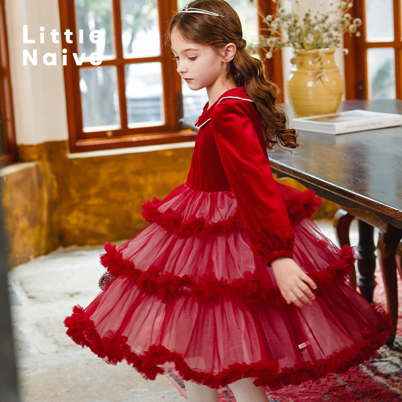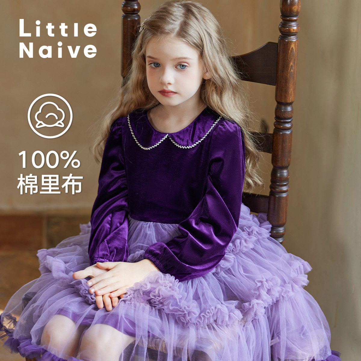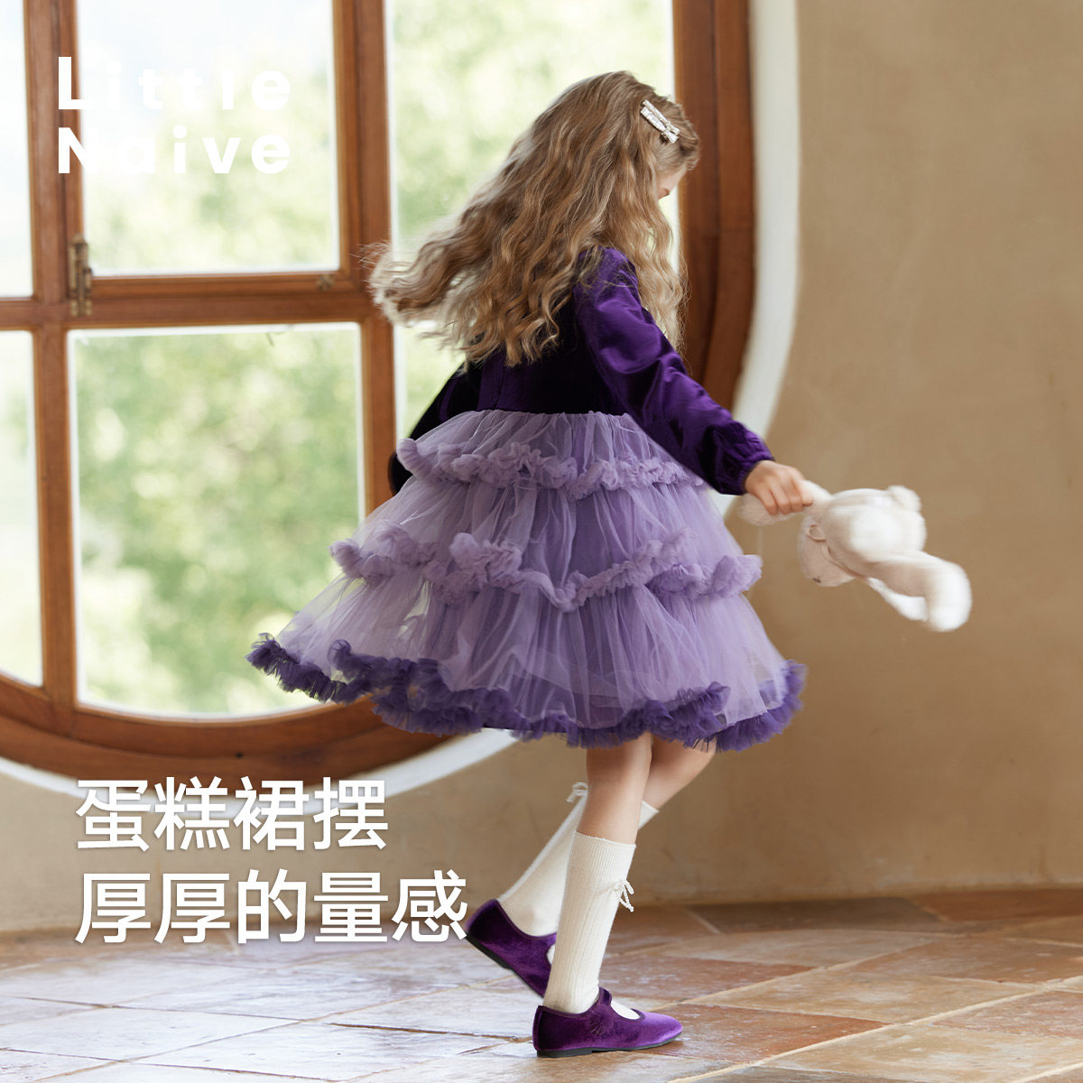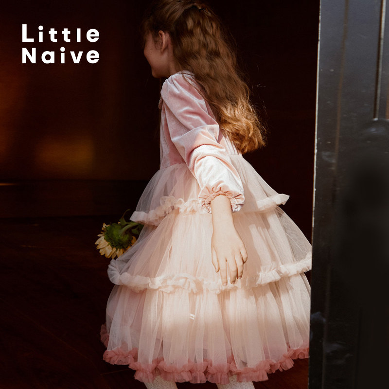Little Naive儿童公主连衣裙秋礼服纱裙女童表演晚礼服生日蛋糕裙