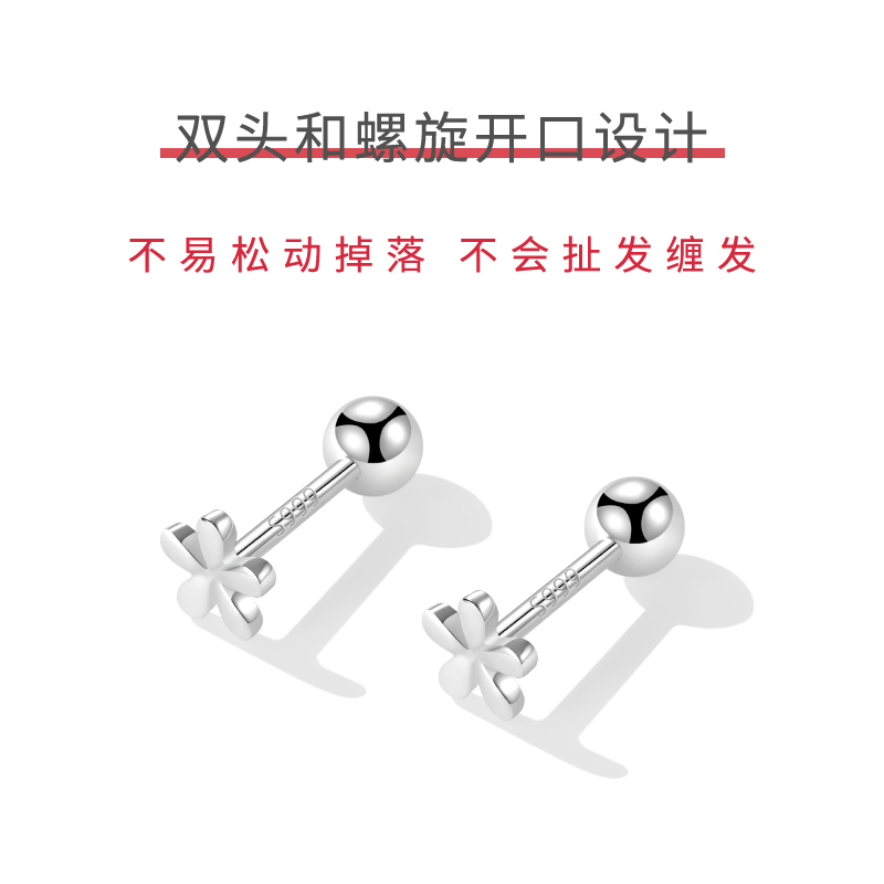 养耳洞999纯银小花朵耳钉螺丝拧扣耳环睡觉免摘2025年新款潮耳饰