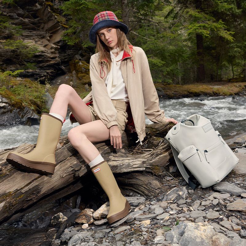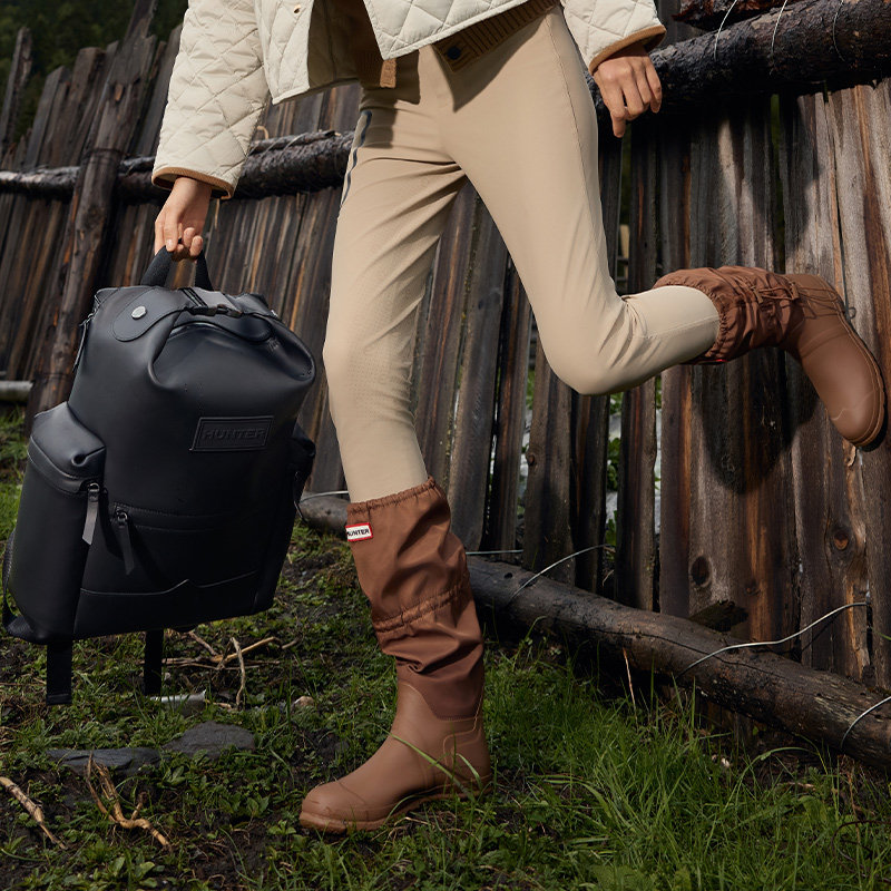 HUNTER男女款经典顶扣皮质双肩包户外登山防泼水旅行双肩背包书包