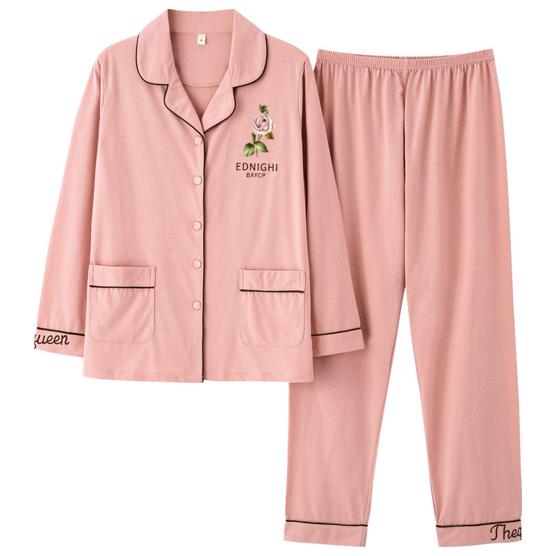 棉睡衣女新款长袖棉妈妈休闲外穿春秋女士中老年纯色套装家居服