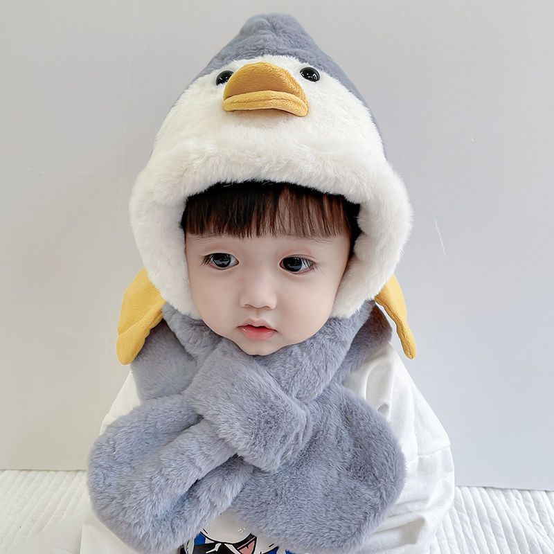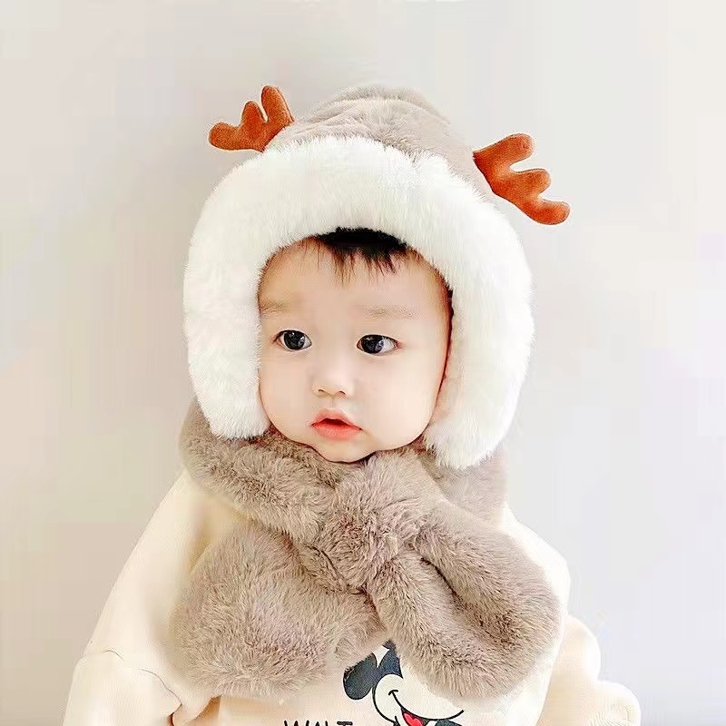 宝宝帽子围巾一体帽秋冬季毛绒婴儿幼儿1-3岁2护耳帽保暖男女儿童
