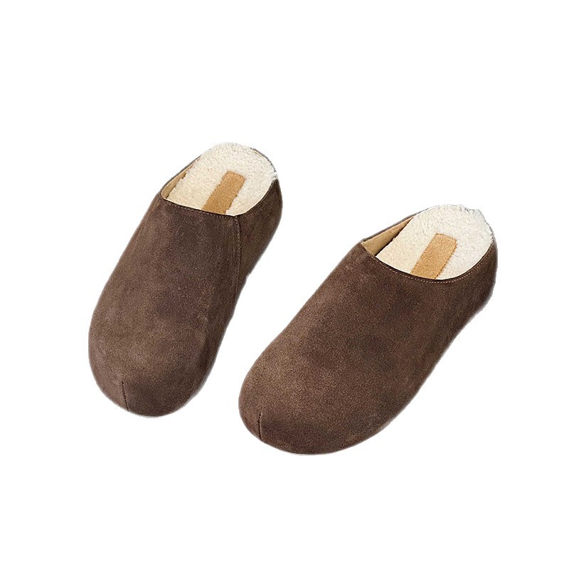 真皮加绒复古勃肯拖鞋女2025冬款懒人一脚蹬厚底舒适百搭外穿