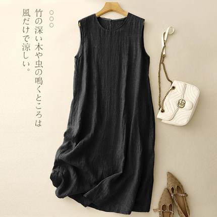 小菲家~棉麻无袖背心裙日系文艺休闲气质百搭夏季中长连衣裙女