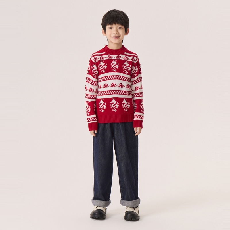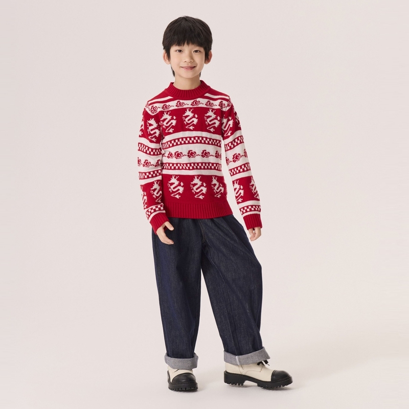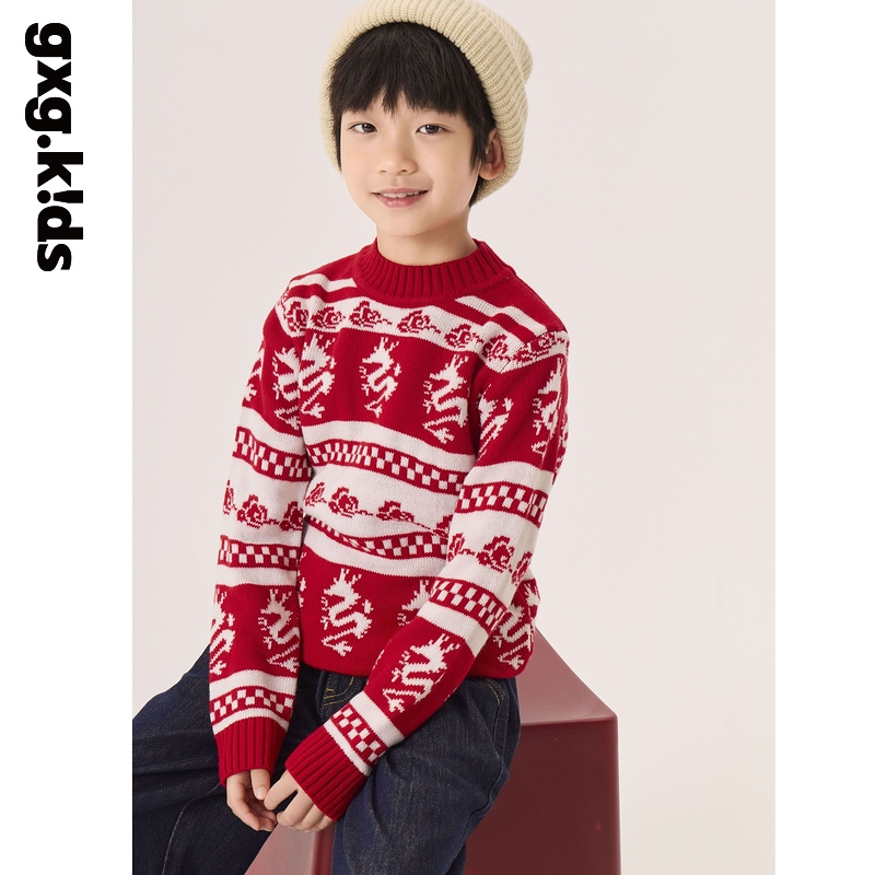GXG童装春季儿童毛衣中大童新国风龙图案毛衫