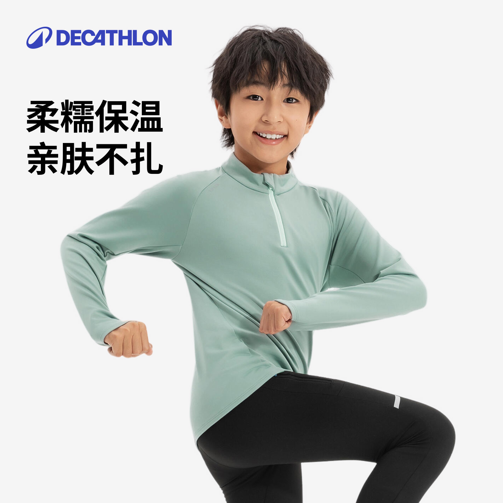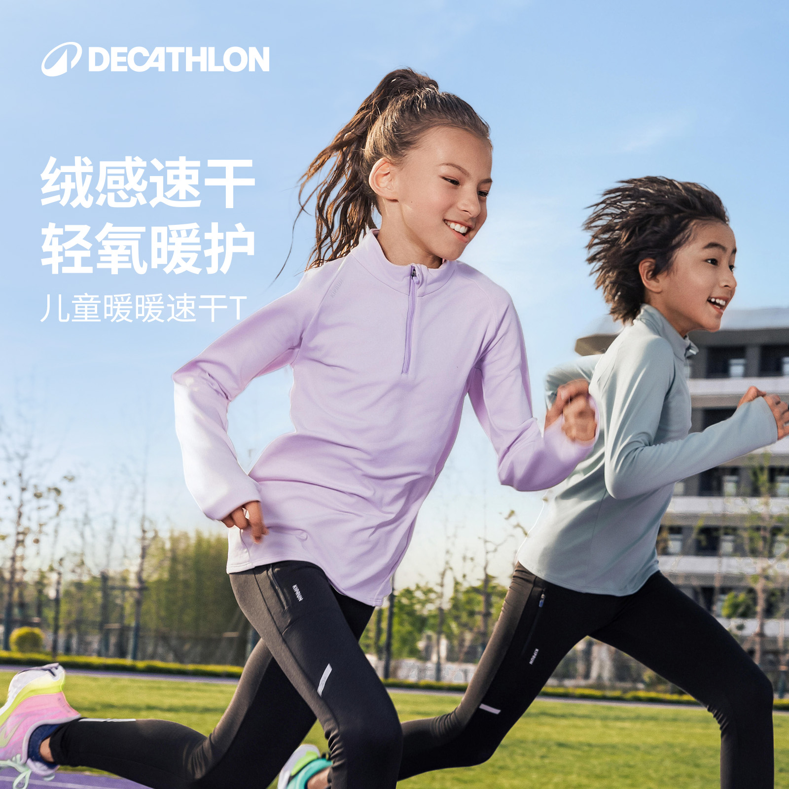 迪卡侬儿童运动t恤秋冬男女童保暖速干衣圆领短袖透气运动服KIDC