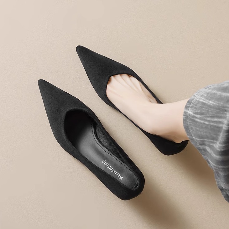 低跟高跟鞋女细跟职业黑色工作鞋2025年春秋新款浅口尖头职业单鞋