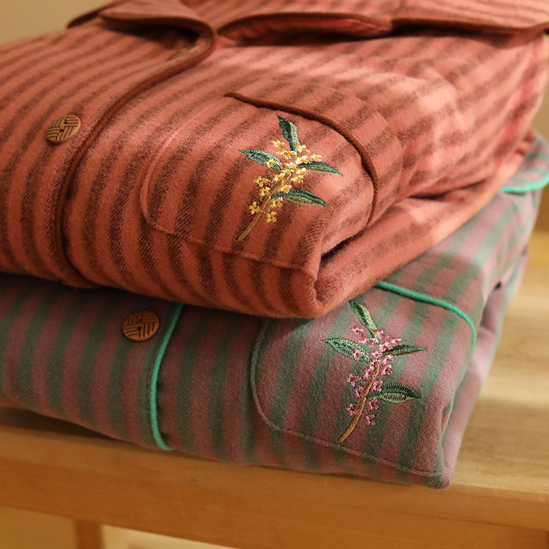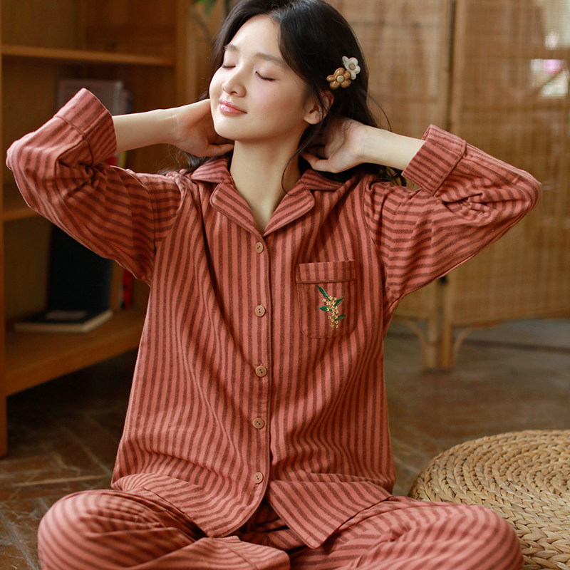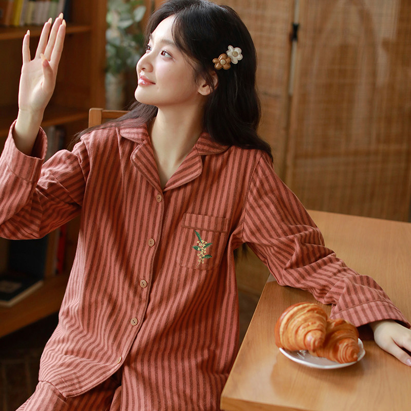 秋季纯棉睡衣女款2025新款100全棉高级磨毛长袖家居服套装可外穿