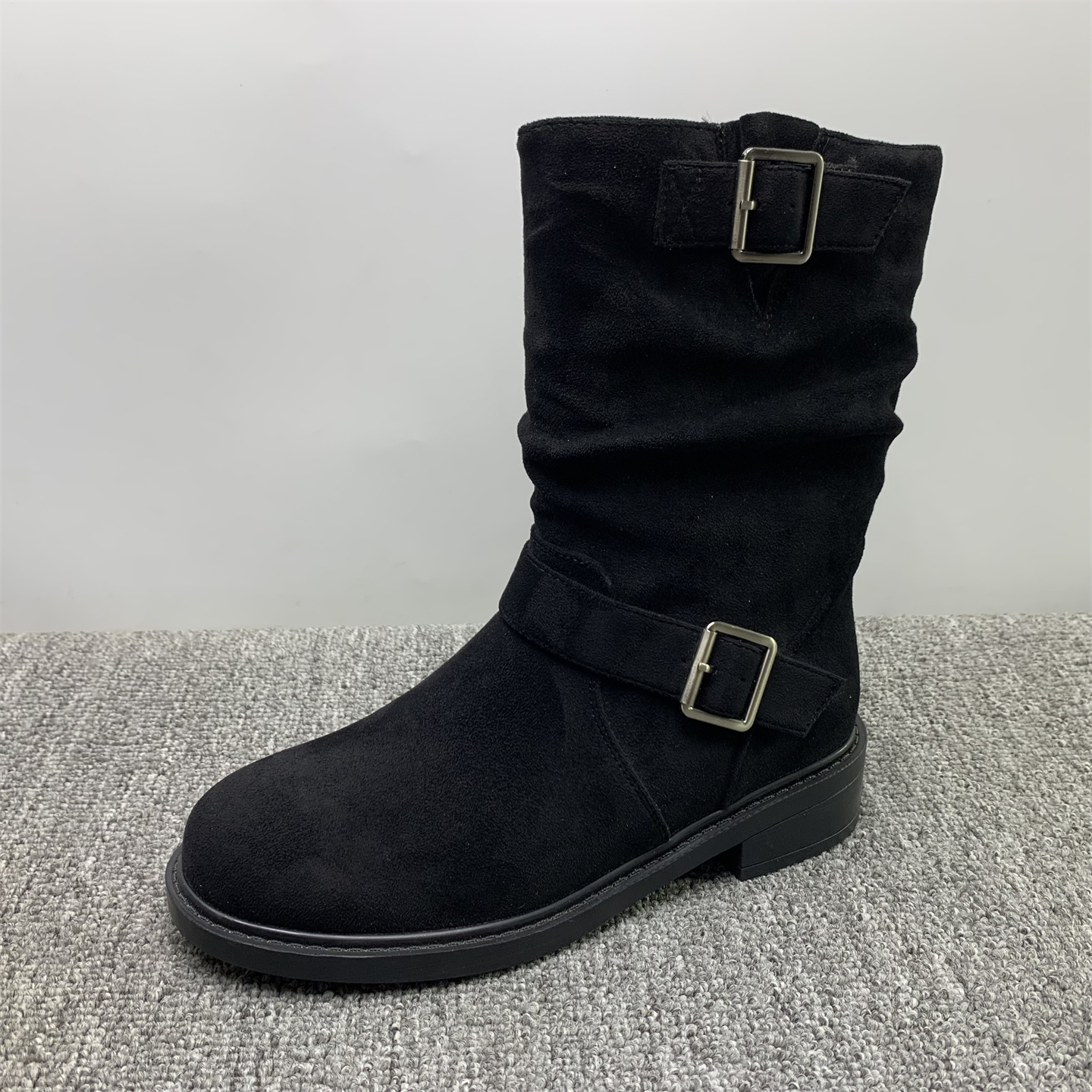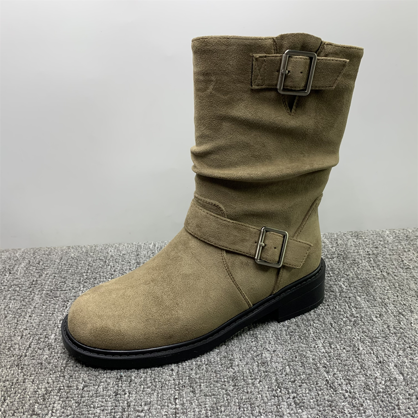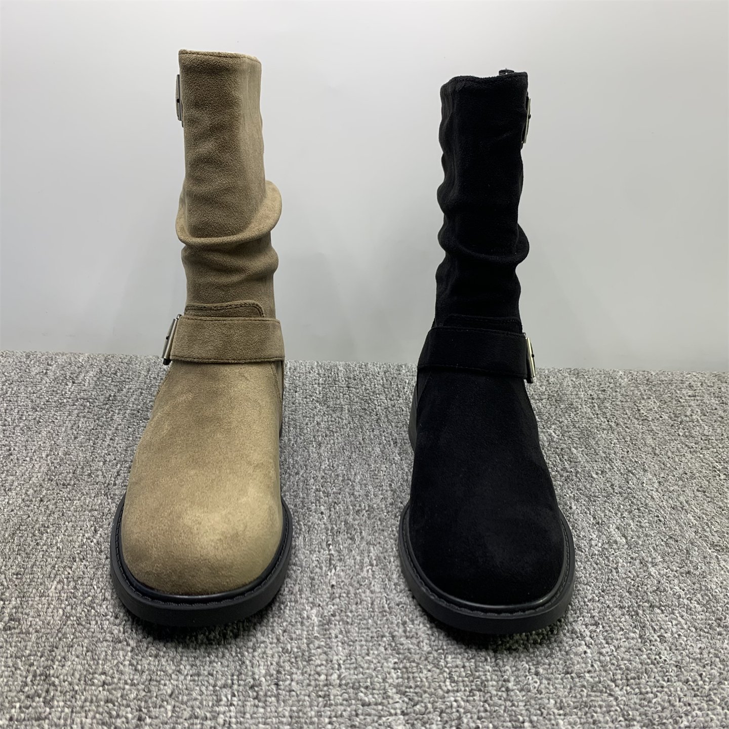 品牌撤柜处理复古羊京绒马丁靴女2025款皮带扣中筒骑士西部堆堆靴