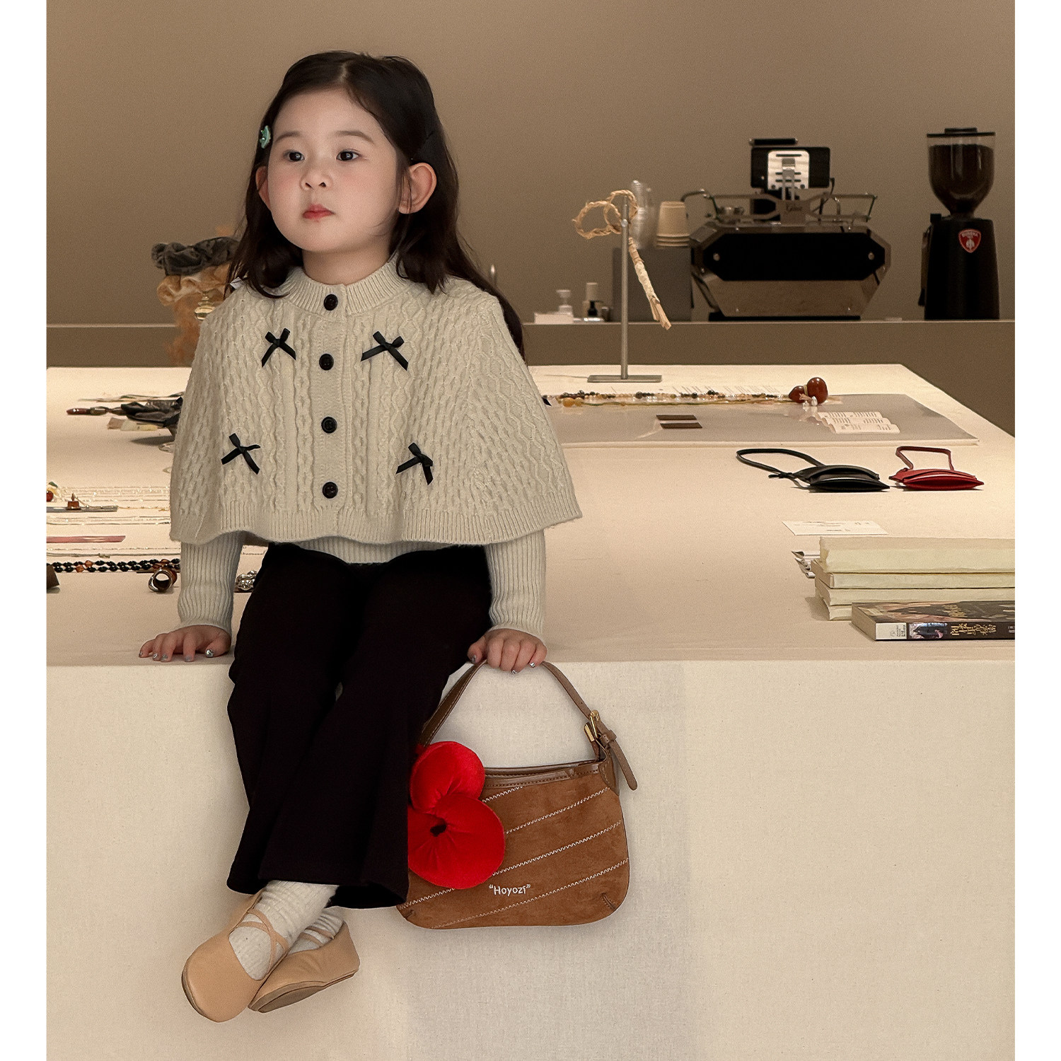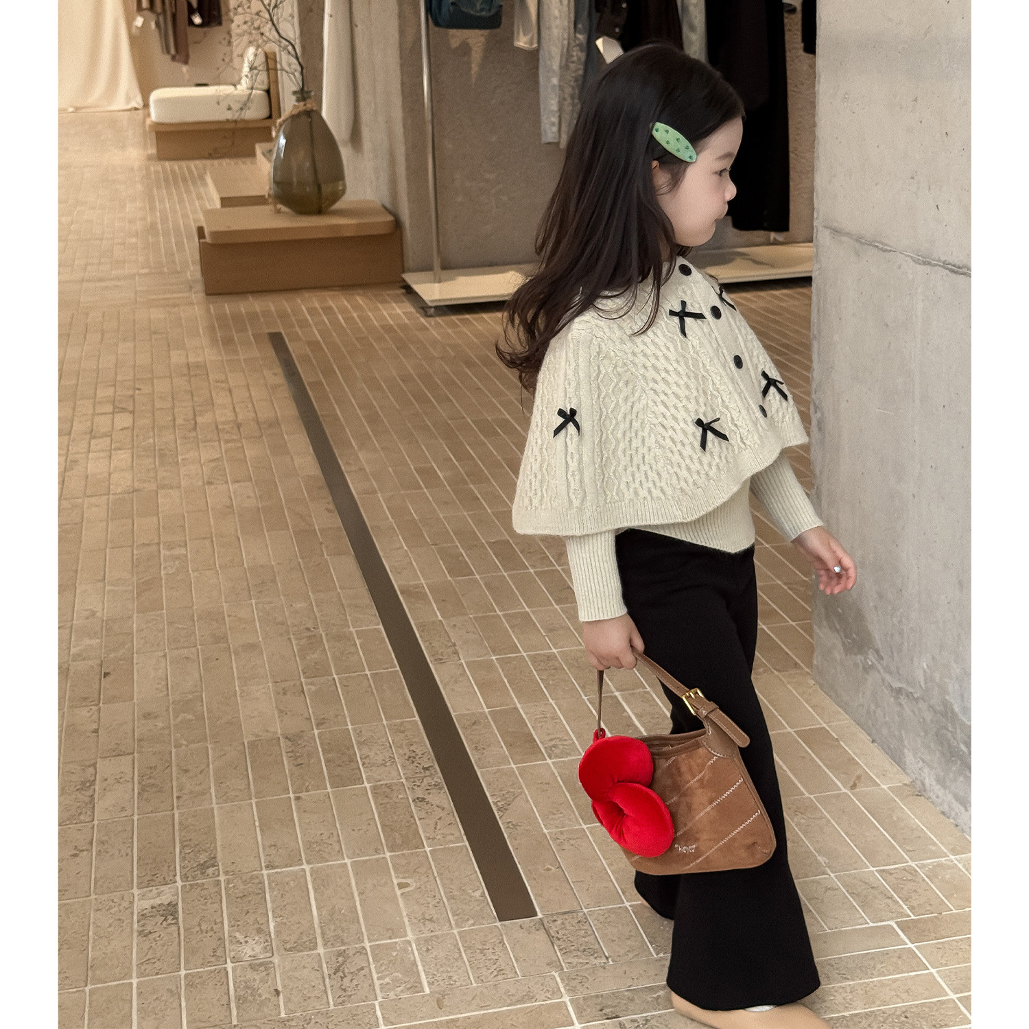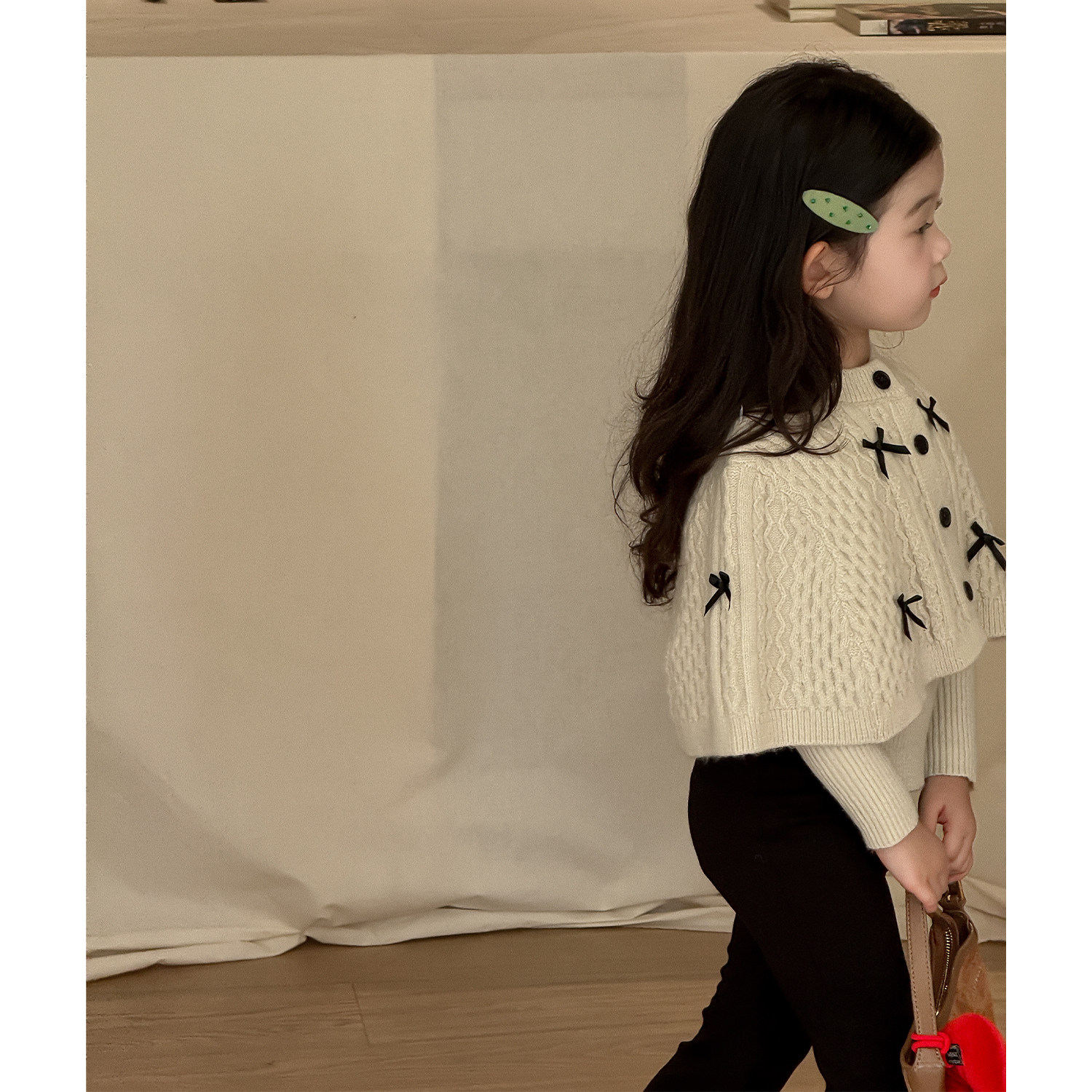 女童蝴蝶结斗篷毛衣外套针织开衫