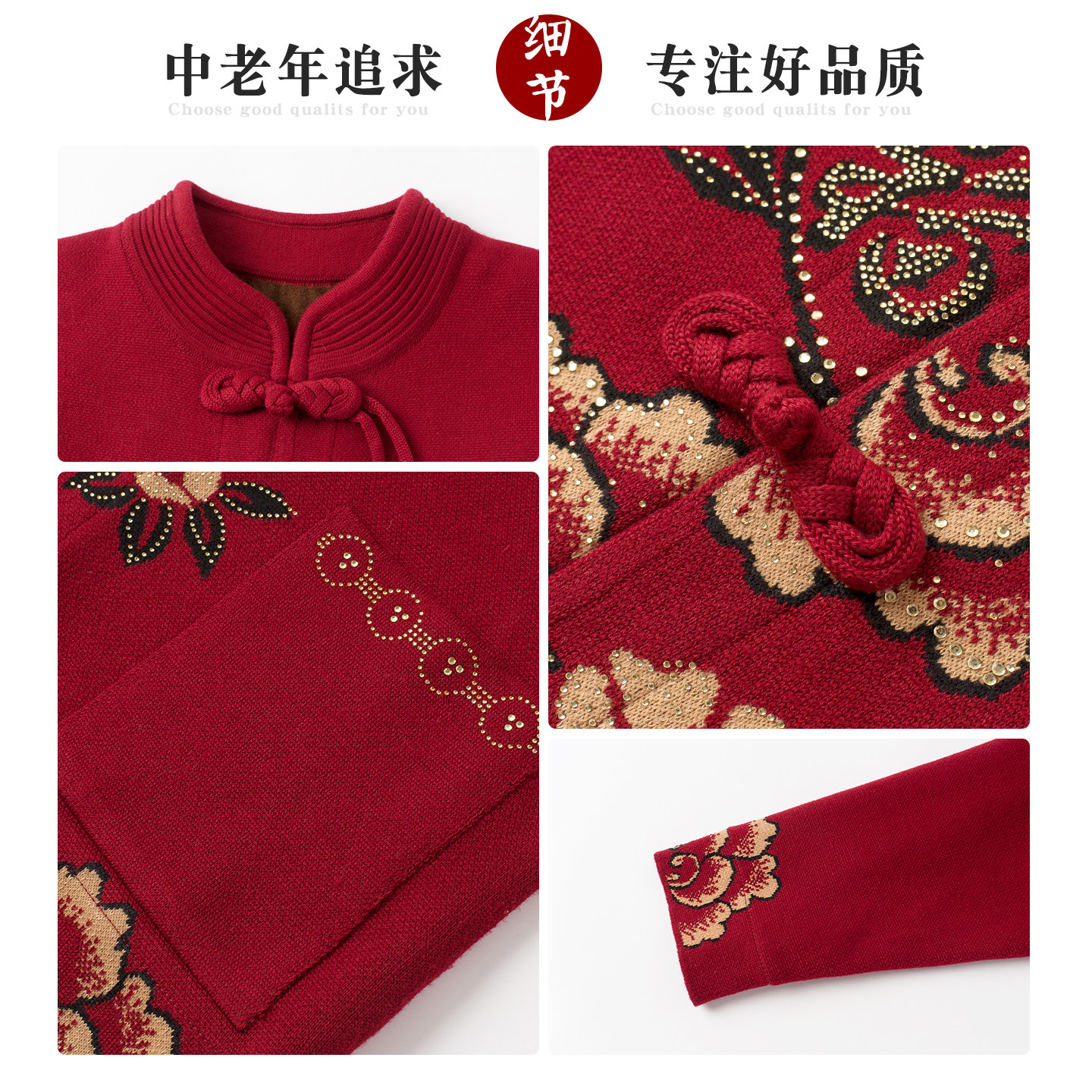 新款妈妈提花唐装上衣中老年毛衣
