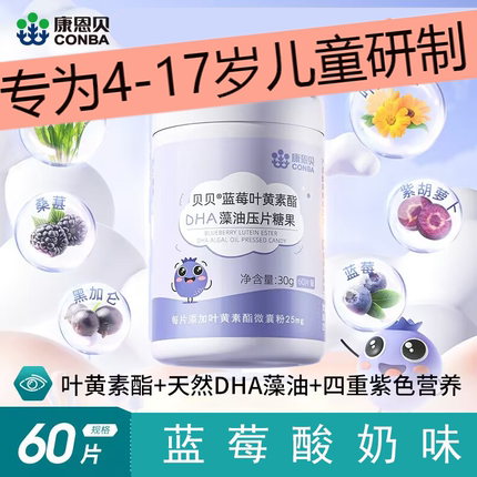 康恩贝蓝莓叶黄素儿童片酯DHA藻油成人儿童叶黄体素非美国专利护