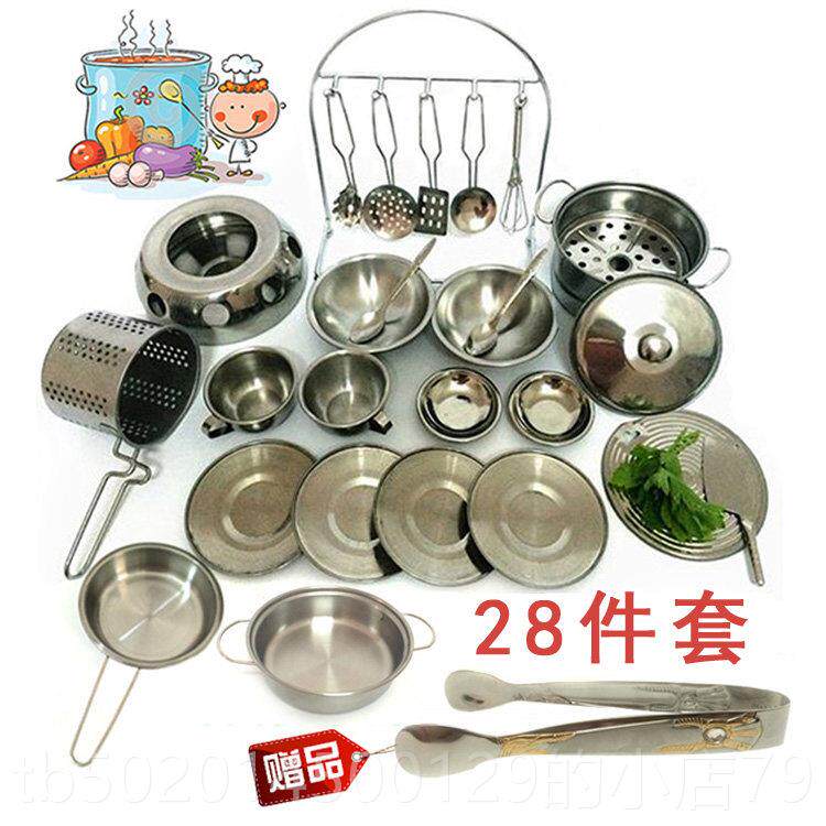 高档食玩烹饪迷你厨房套装做饭小厨具型过童家家具微儿玩不锈钢锅