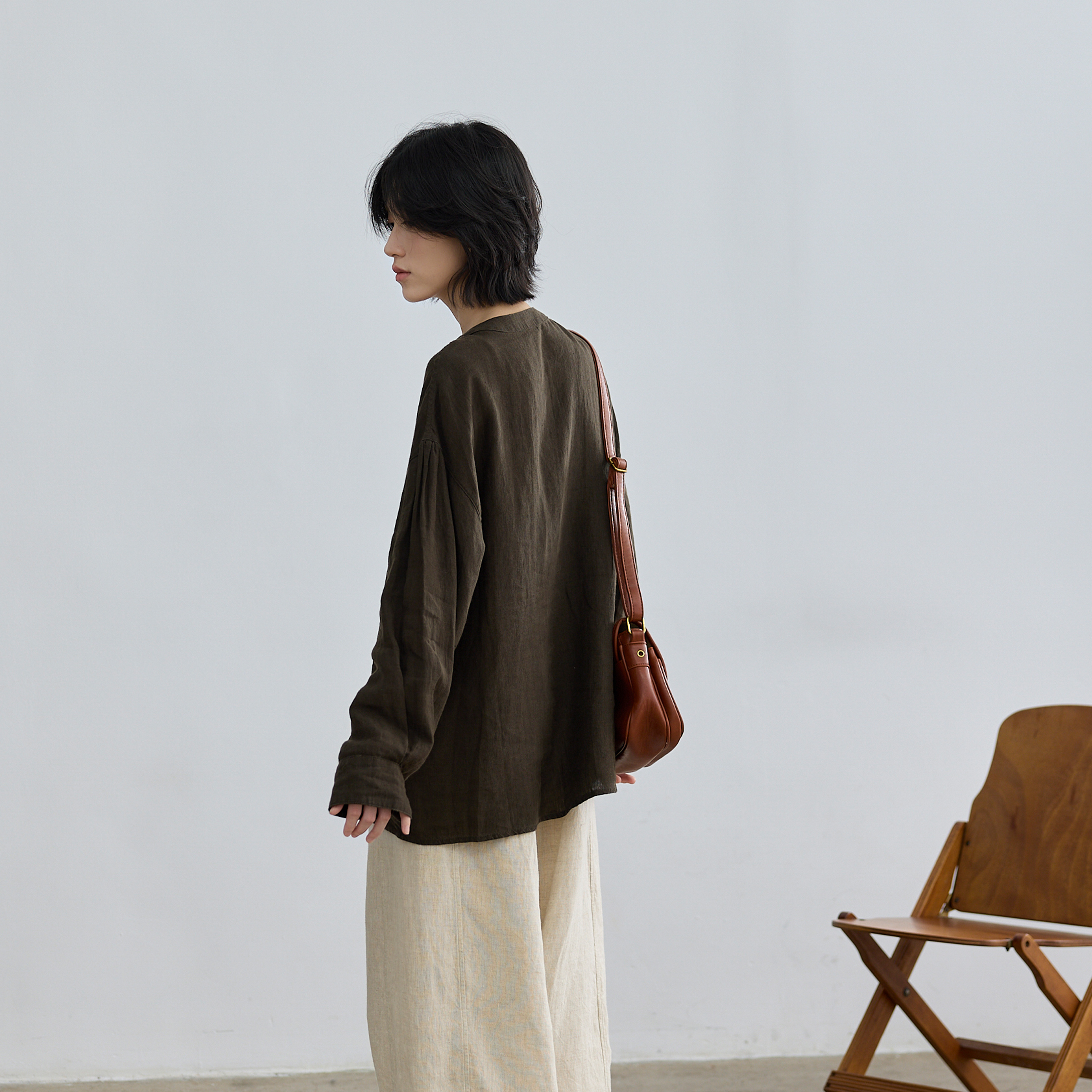 拙外【幽居】高端小资小上衣100%亚麻秋季新款长袖衬衫超好看小衫