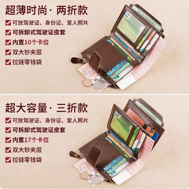 正品牛皮钱包2026头层牛皮钱包男短款真皮驾驶证多功能爆款皮夹女