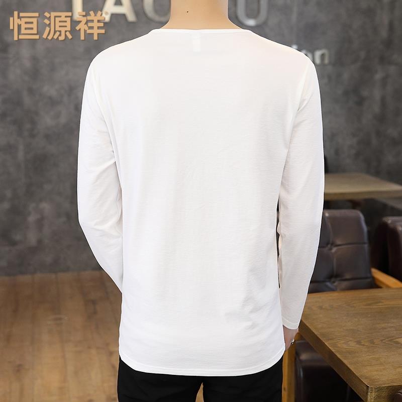 恒源祥春秋季长袖T恤男士潮流V领男装内搭打底衫薄款秋装中年上衣
