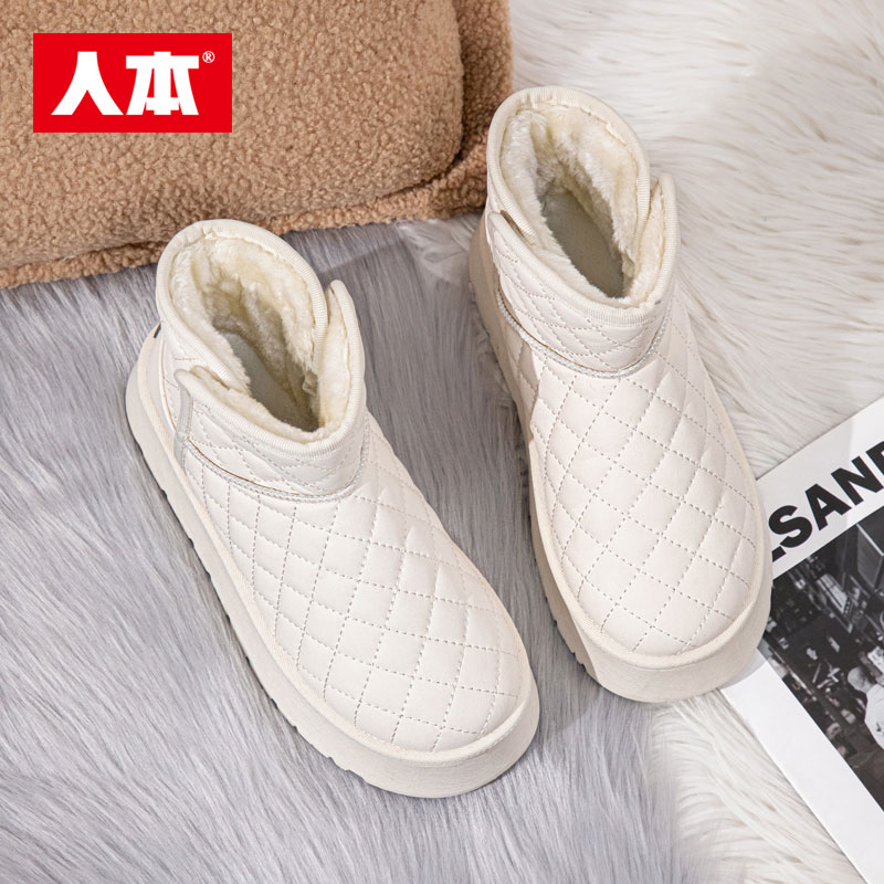 人本皮面防水雪地靴女冬季加绒2025新款保暖厚底面包鞋东北大棉鞋