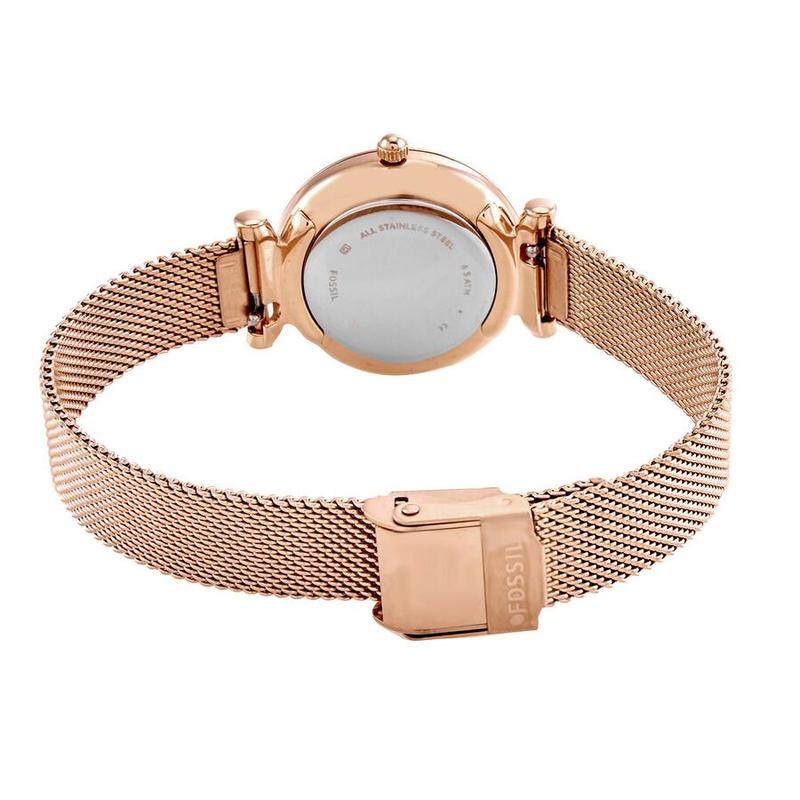 代购Fossil化石女士腕表夜光防水指针走时钢带金属玫瑰金网状