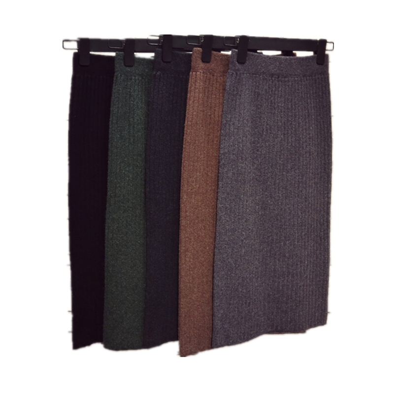 针织半身裙子女秋冬新款宽松显瘦毛线裙韩版中长裙高腰开叉一步裙