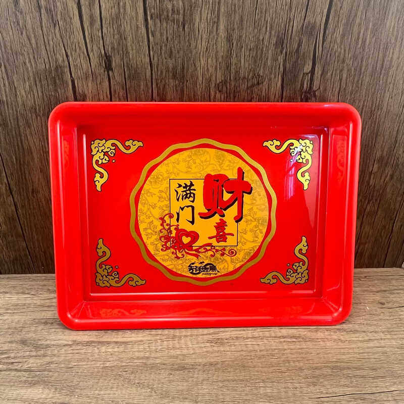 塑料大号三牲结婚入伙乔迁糖果红喜盘拜祖拜神盘长方形大托盘红盘