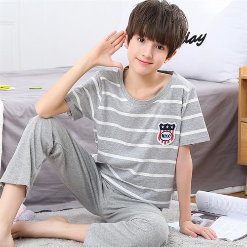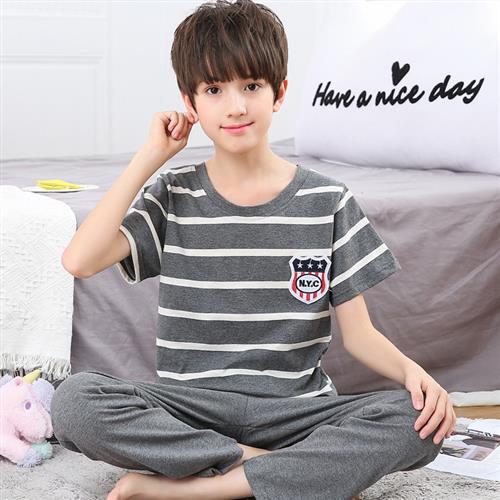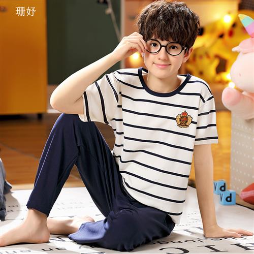 儿童睡衣男孩夏季纯棉短袖长裤胖童中大童薄款半袖宝宝空调服套装