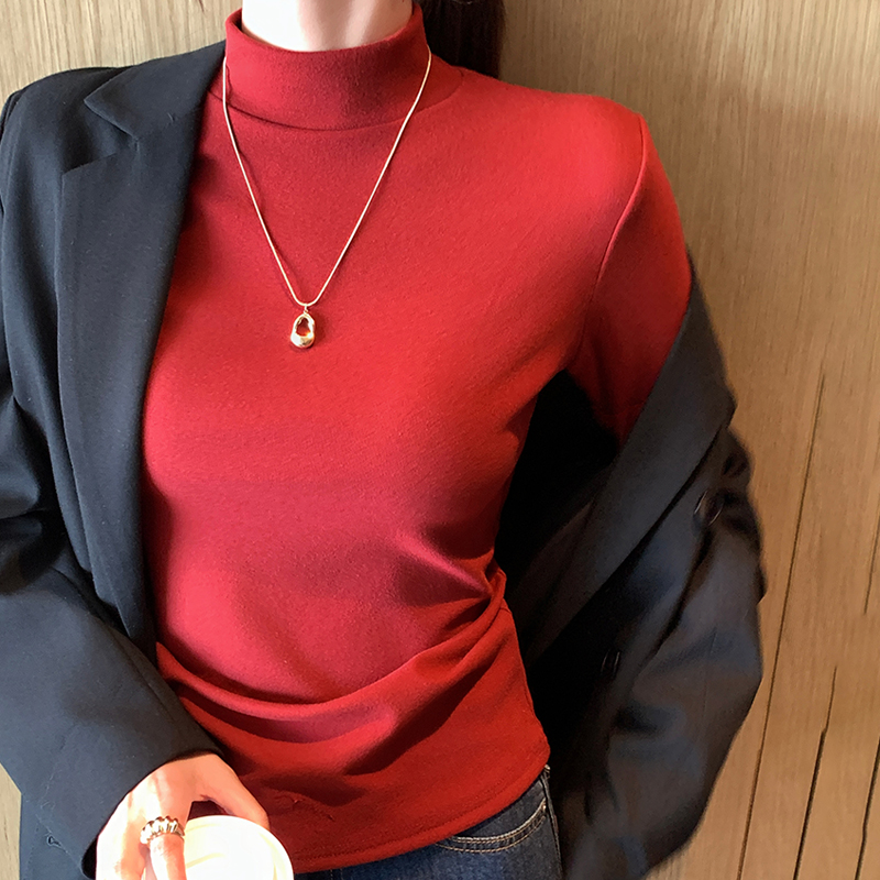 半高领双面德绒长袖t恤女2025秋新款气质显瘦加厚打底衫内搭上衣