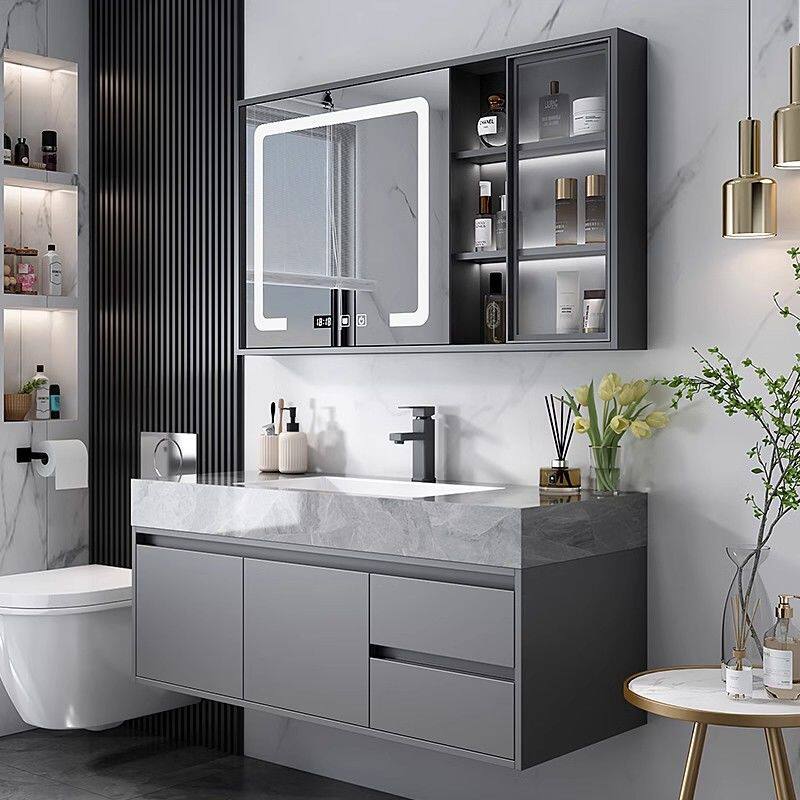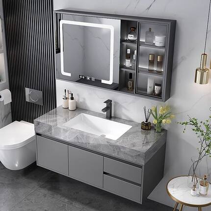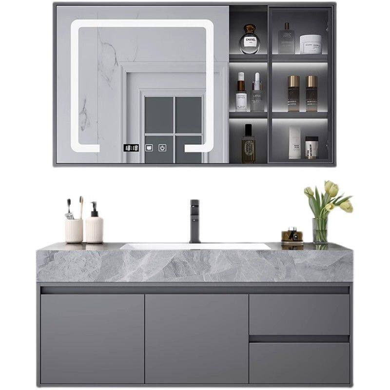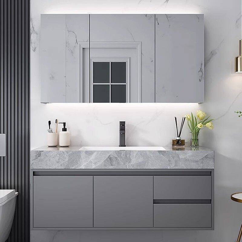莫顿简约轻奢浴室柜实木组合岩板陶瓷无缝一体卫生间洗漱池洗脸盆