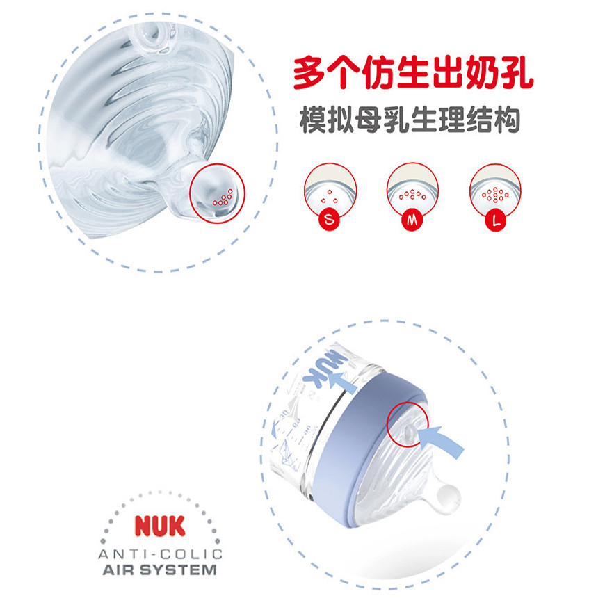 德国NUK自然母感120ml240ml加宽口玻璃奶瓶带0-6-18个月S号M号