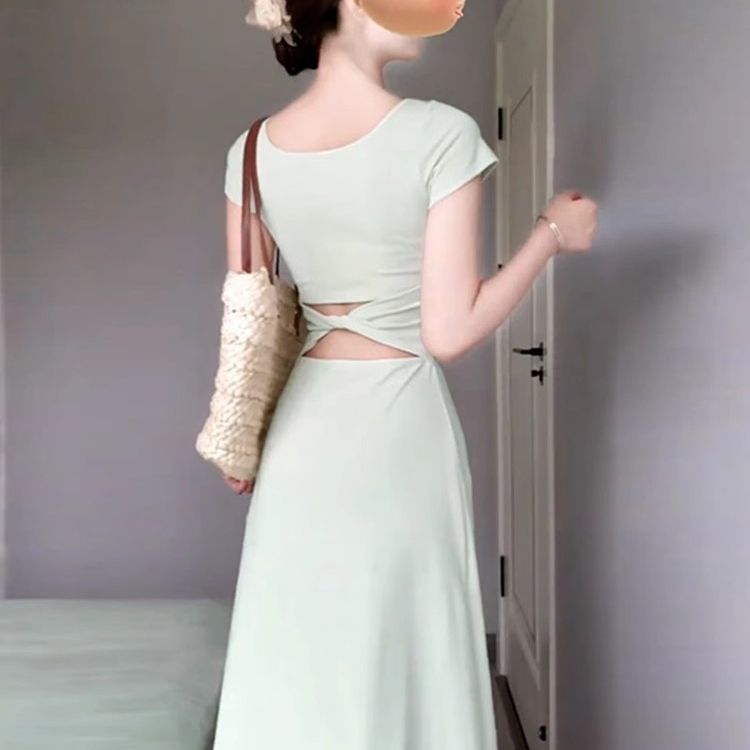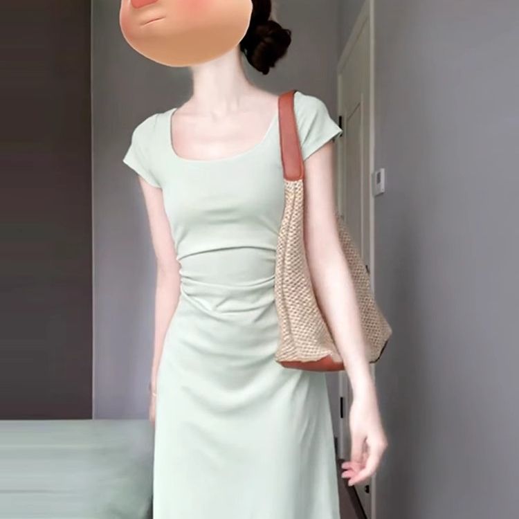 粉色多巴胺掐腰连衣裙女修身法式包臀长裙绝美小裙子2025新款