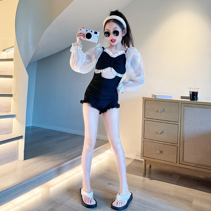 女童泳衣夏季2024新款儿童洋气连体游泳衣女大童时髦网红防晒泳装