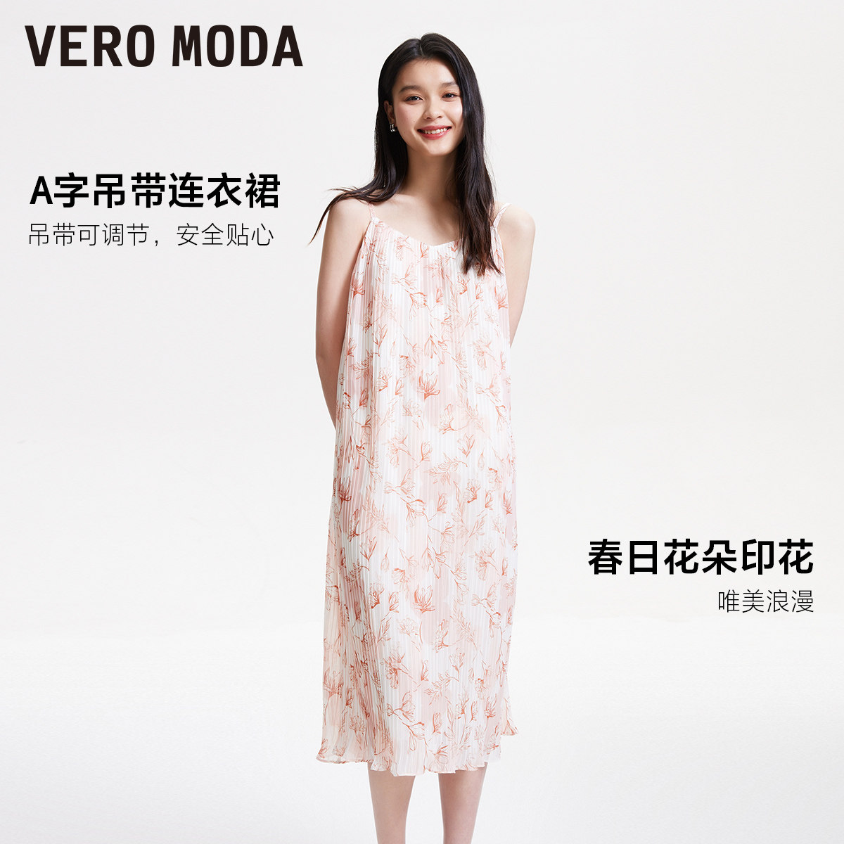 Vero Moda奥莱连衣裙春夏新款休闲度假风浪漫气质印花吊带裙子