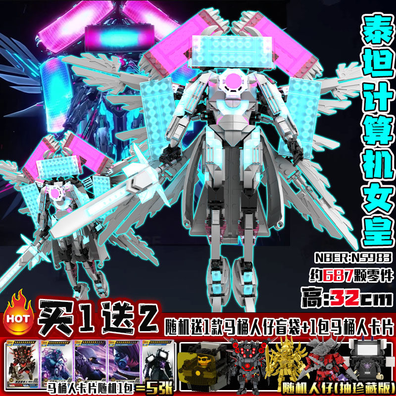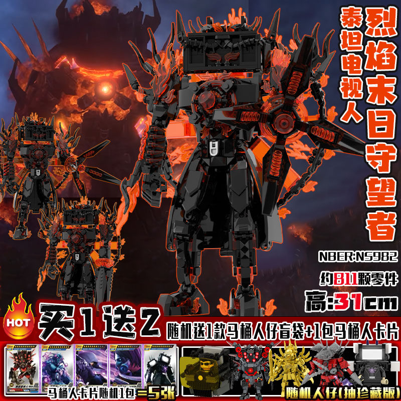 烈焰末日守望者积木泰坦电视人新款马桶人vs监控人机甲拼装玩具男