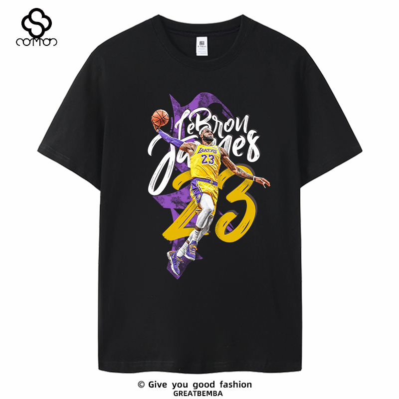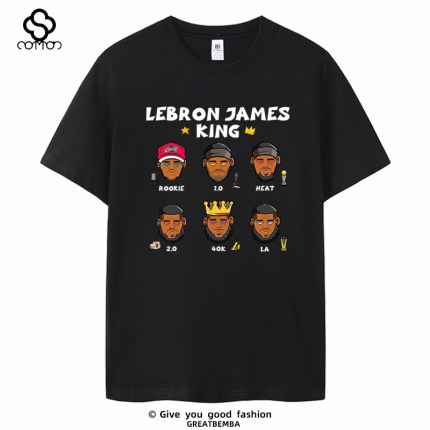 夏季湖人詹姆斯T恤短袖生涯詹姆斯纪念短袖卡通篮球休闲大码男士