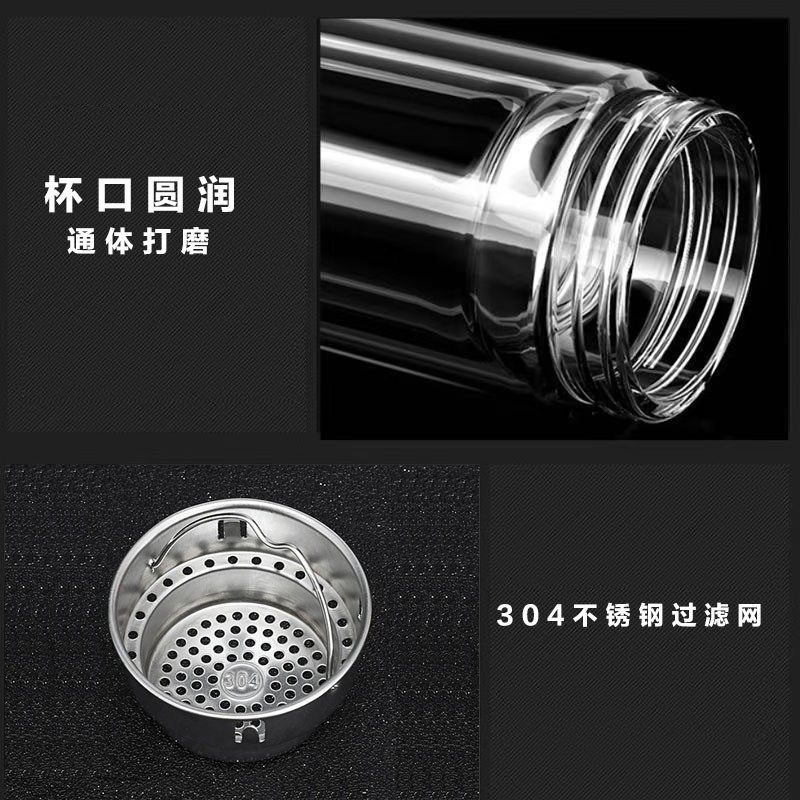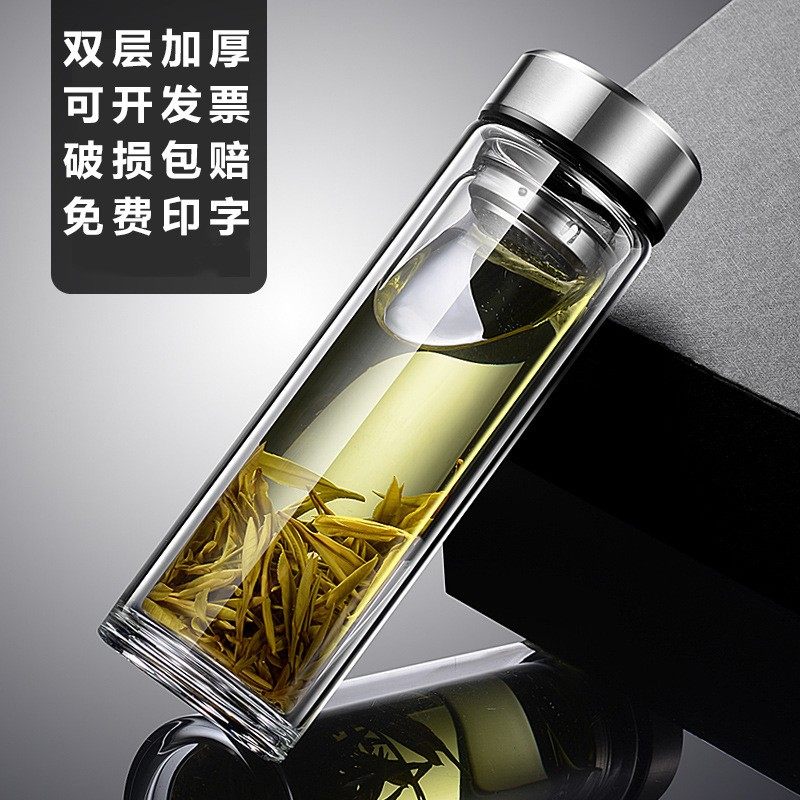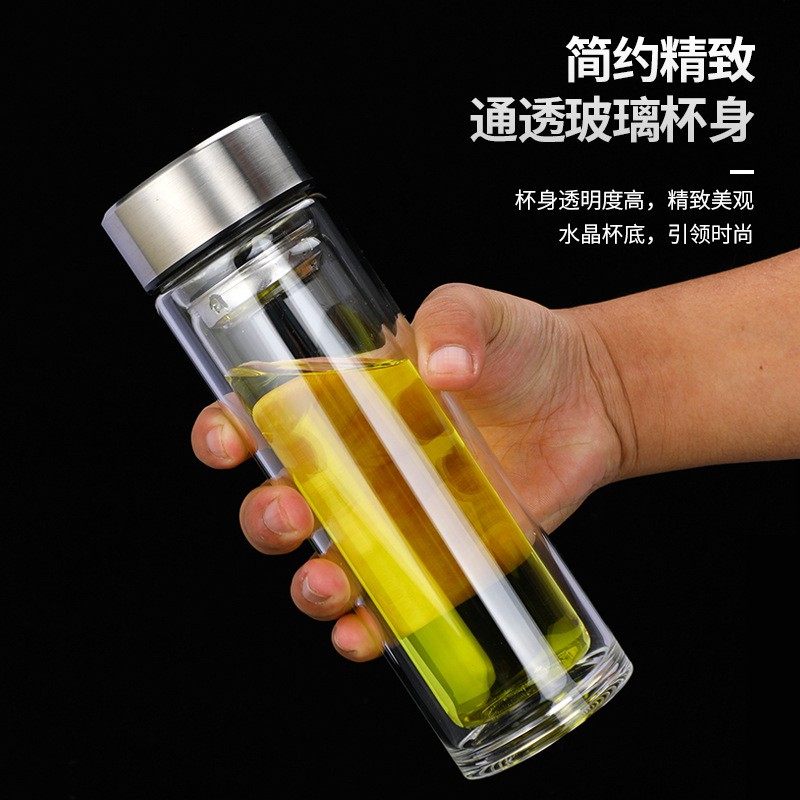 双层玻璃杯便携男商务办公泡茶杯简约便携加厚大容量家用玻璃水杯