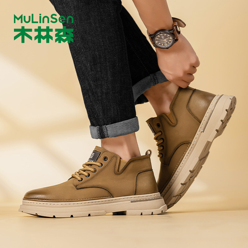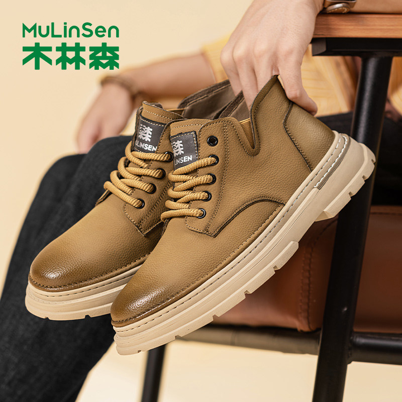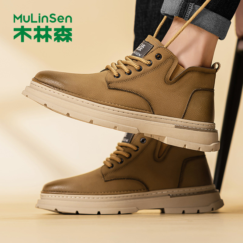 木林森马丁靴男款厚底春秋季复古工装皮鞋男增高中帮英伦风休闲鞋