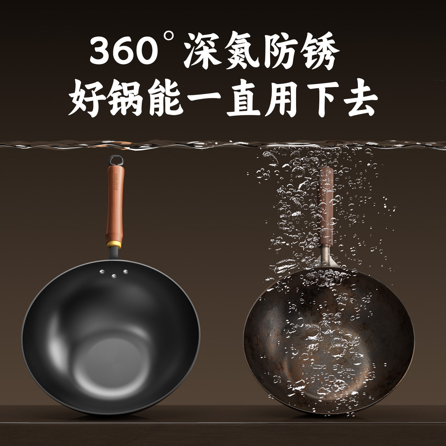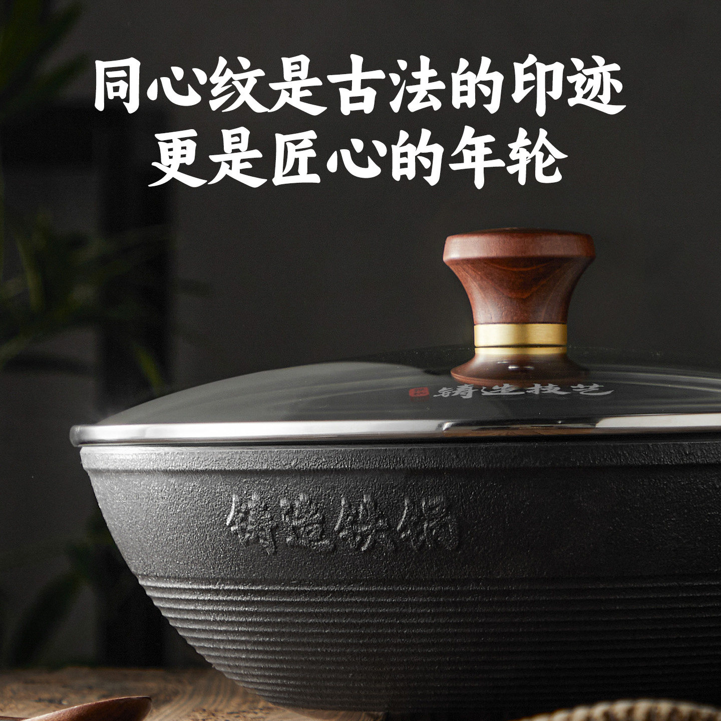 苏泊尔铁锅炒菜锅真不锈铸铁非遗炒锅家用老式平底燃气灶电磁炉用