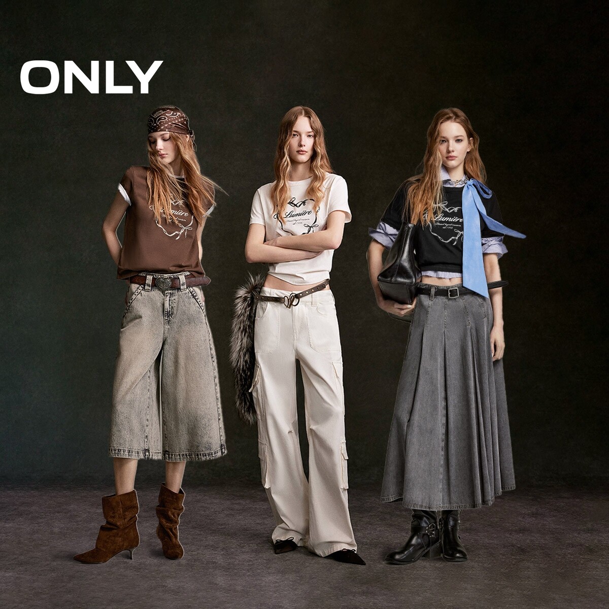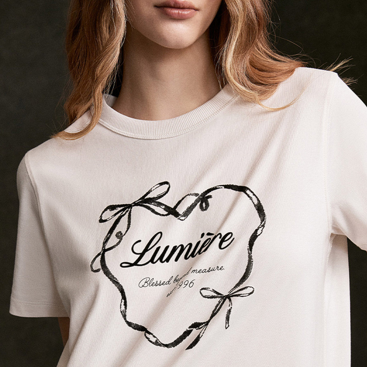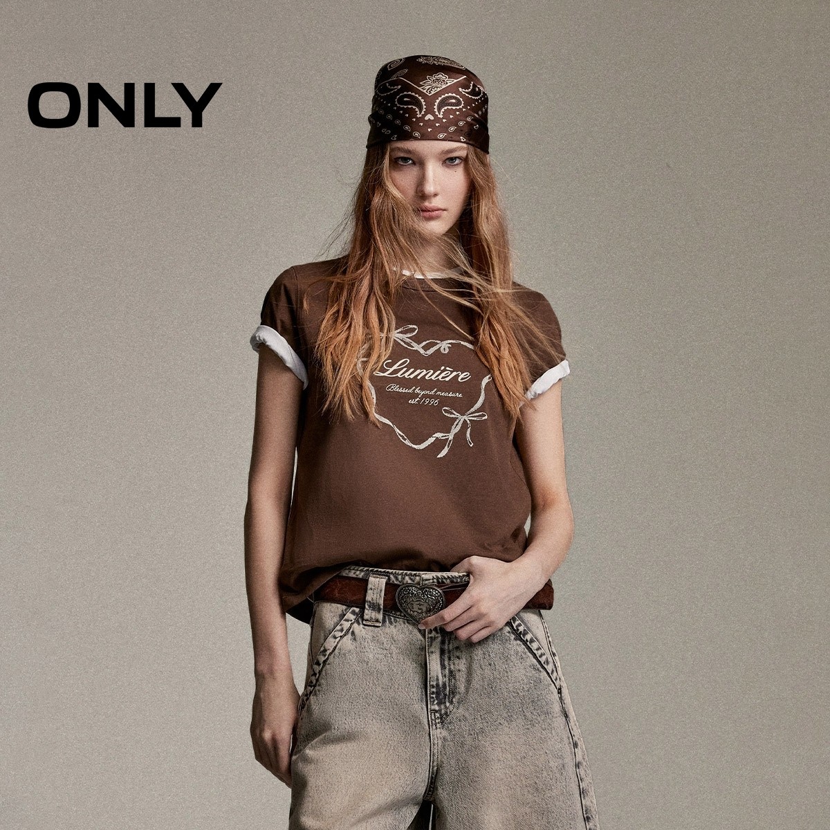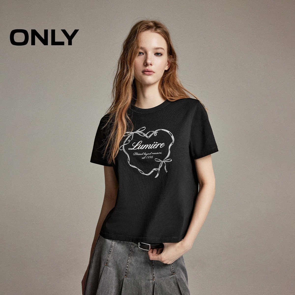 ONLY复古爱心印花短款正肩T恤