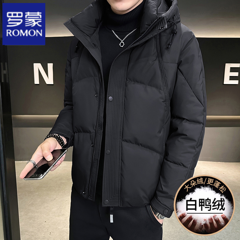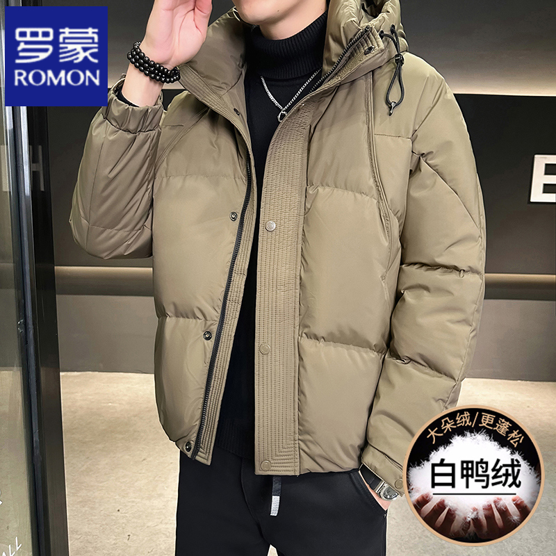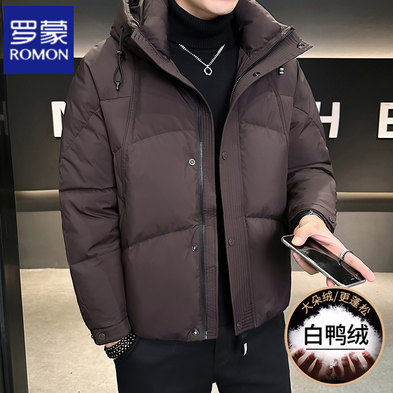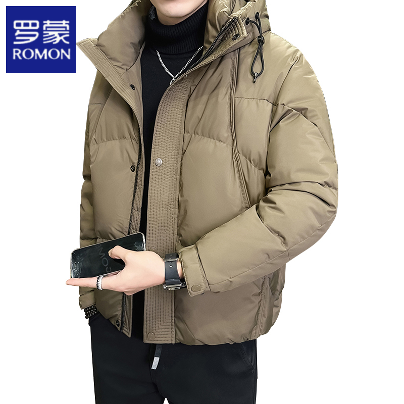 罗蒙男士连帽羽绒服2025秋冬季新款高级感潮牌冬装保暖棉服外套