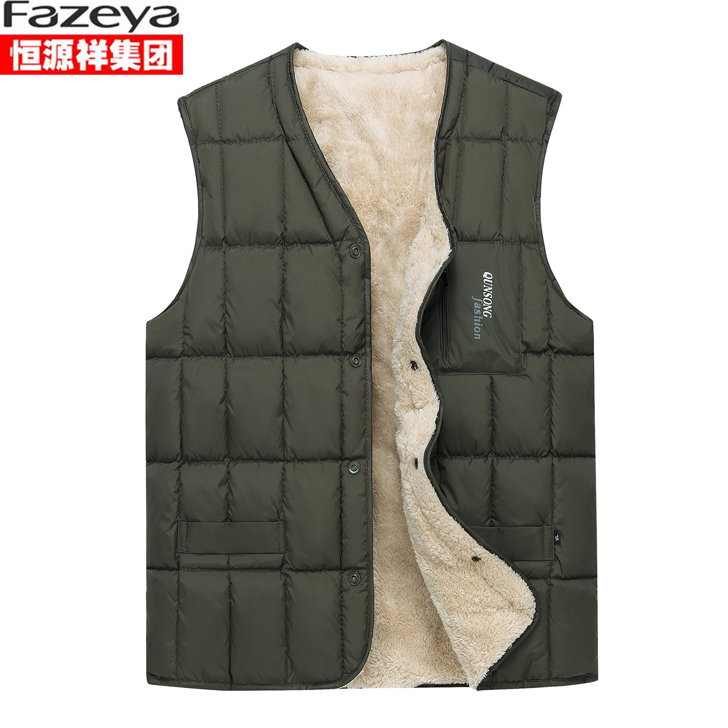 恒源祥集团彩羊羽绒棉马甲男中老年加绒厚背心内穿坎肩马夹爸爸装