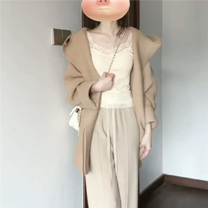 韩系穿搭早秋上衣中长款不规则奶呼呼软糯开衫毛衣外套女冬针织衫