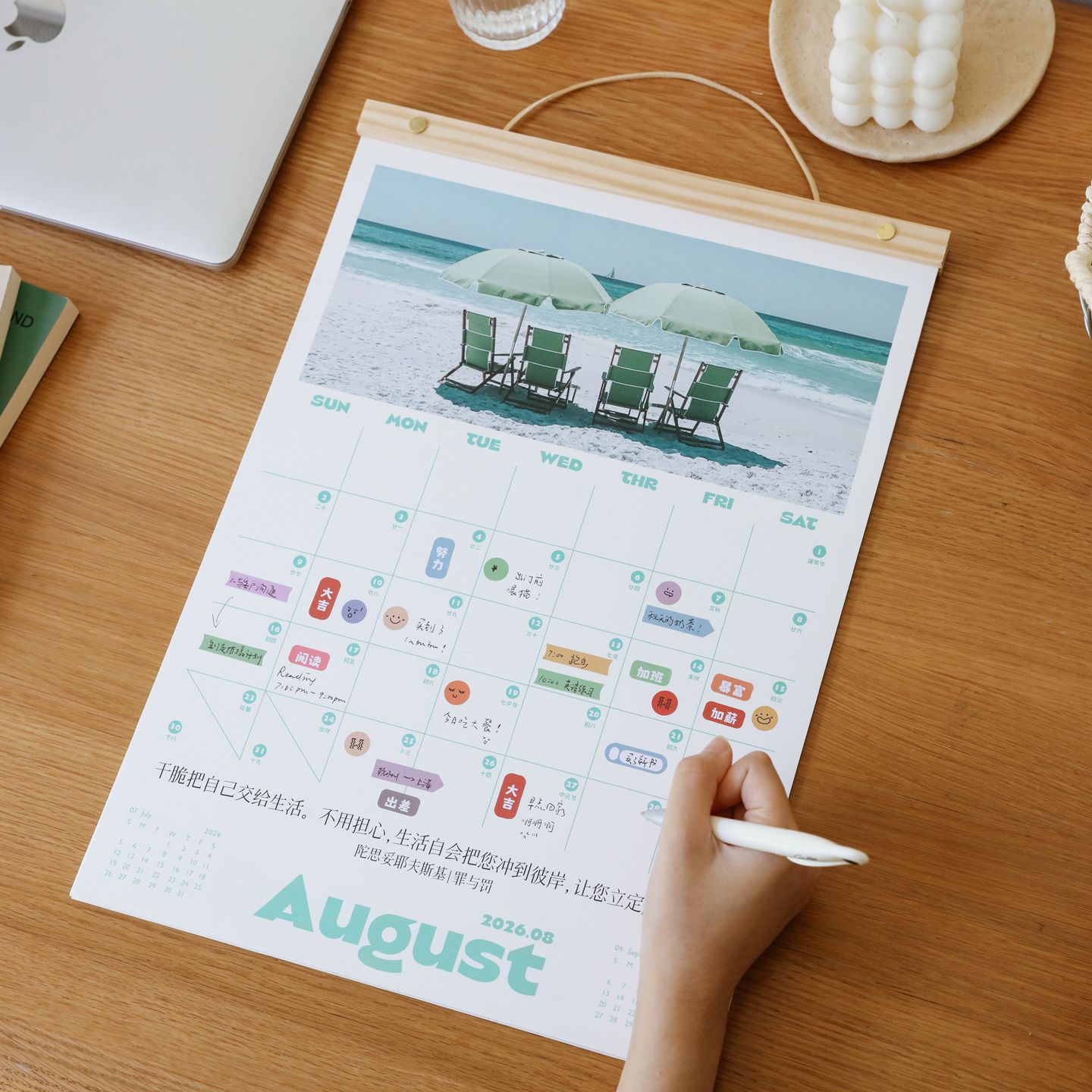 2026年风景系列日历挂墙记事装饰墙面可撕挂历日常打卡计划表